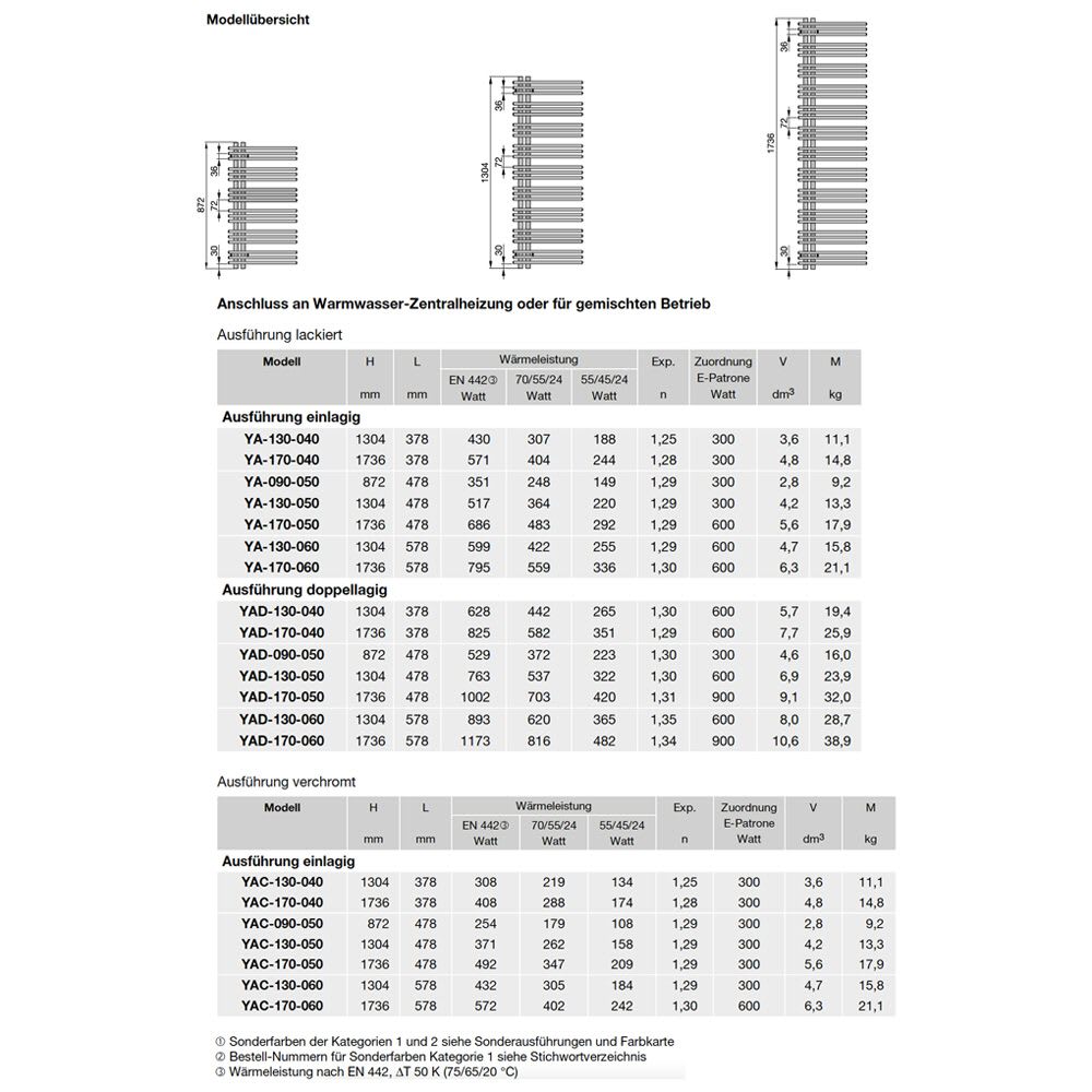 Zehnder Yucca Asym YA-170-060 Badheizkörper 57,8 x 173,6 cm