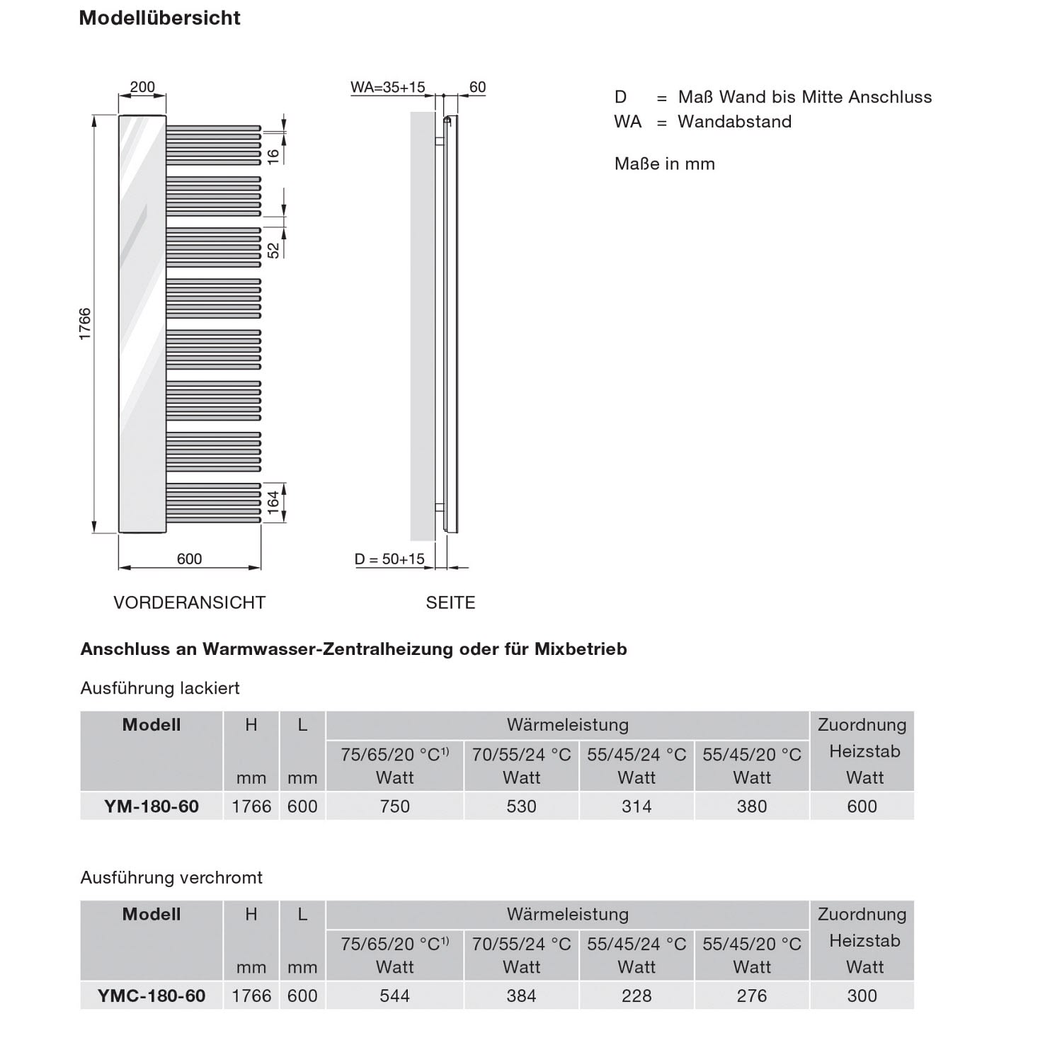 Zehnder Yucca Mirror YM-180-60 Badheizkörper 60 x 176,6 cm