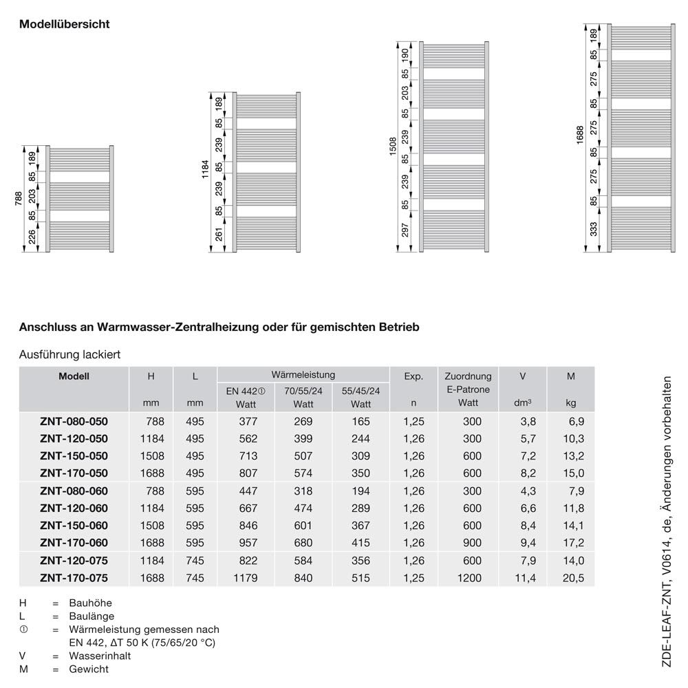 Zehnder Zeno Bow ZNT-170-060 Badheizkörper 59,5 x 168,8 cm