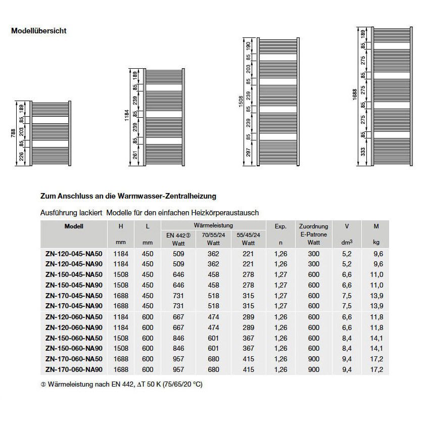 Zehnder Zeno ZN-170-045-NA50 Badheizkörper für Austausch 45 x 168,8 cm