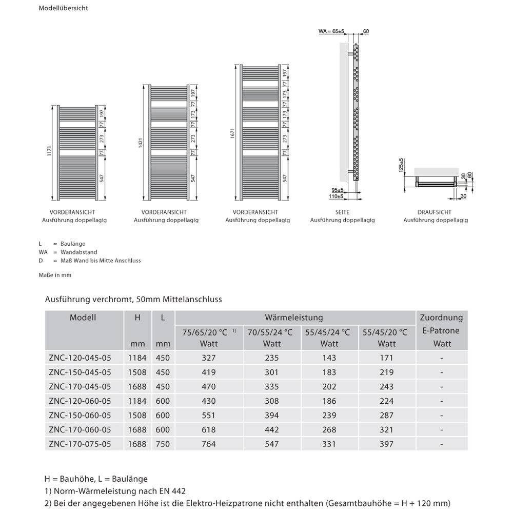 Zehnder Zeno ZNC-150-045-05 Badheizkörper 45 x 150,8 cm mit Mittelanschluss
