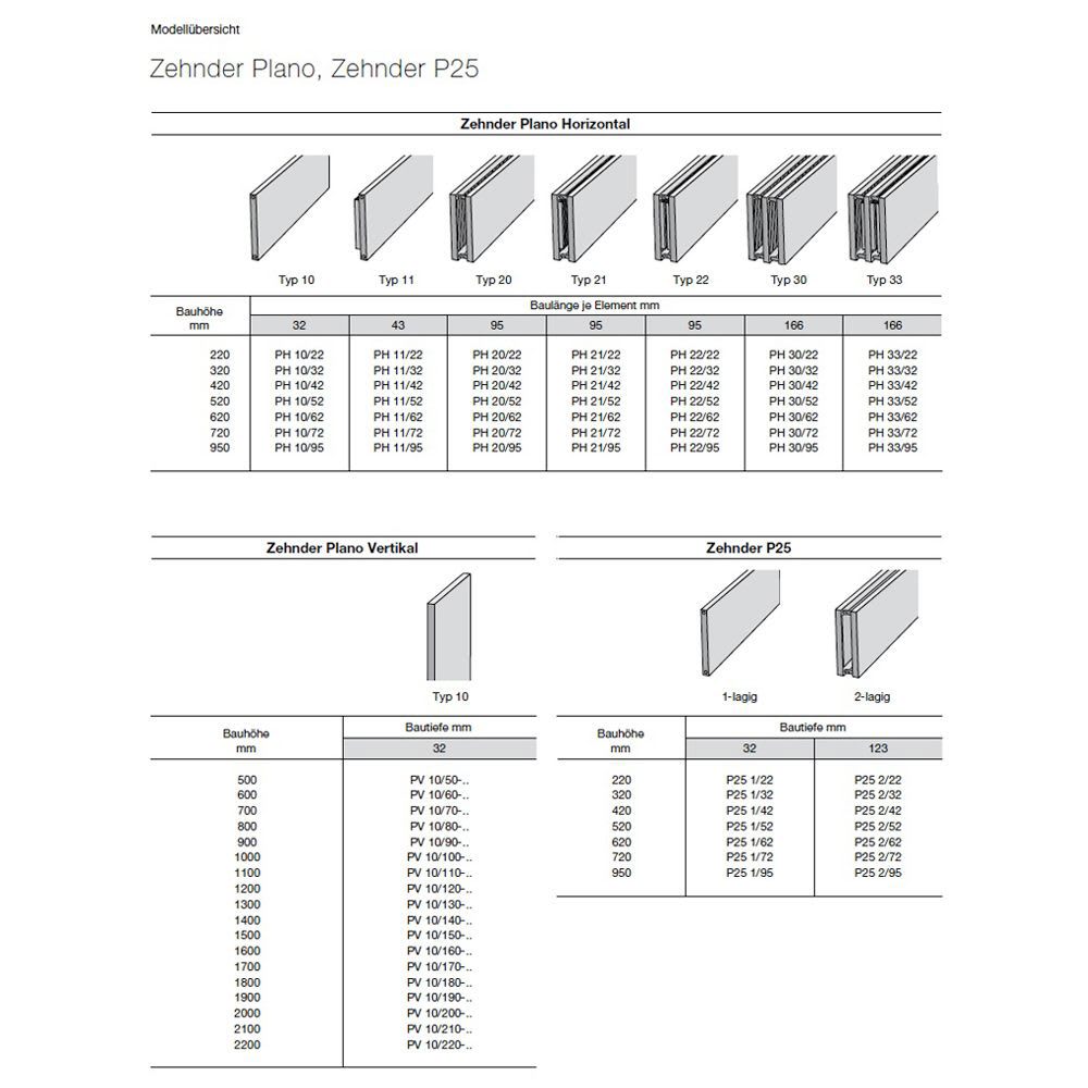 Zehnder Plano PV10 210-22 Flachheizkörper 22 x 3,2 x 210 cm