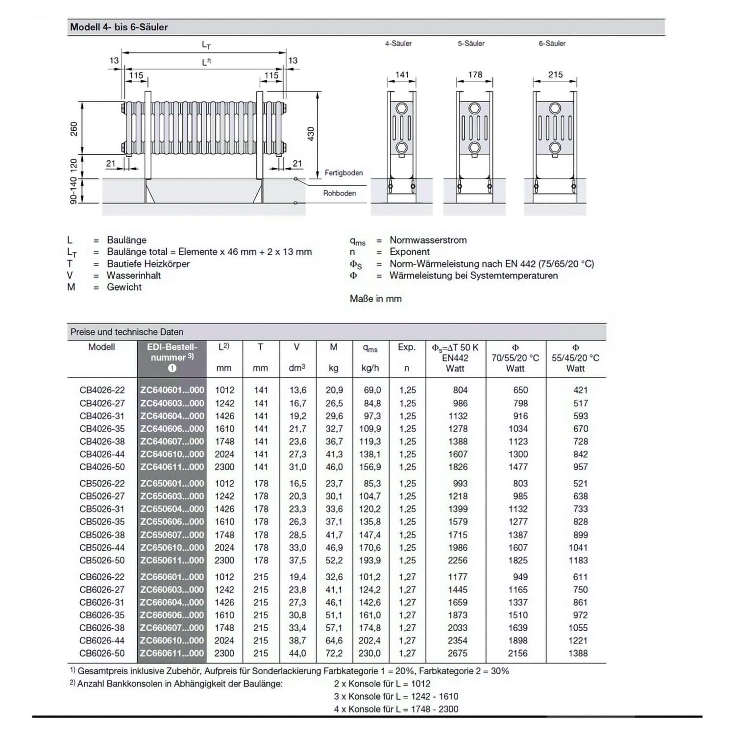 - Bankkonsolen für Roh- oder Fertigboden