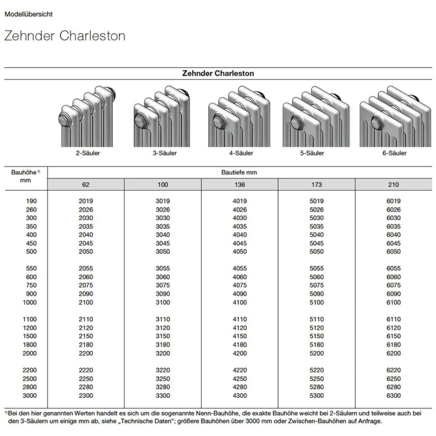 Zehnder Charleston 2180 Heizkörper 23 x 180 x 6,2 cm Anschluss 5510