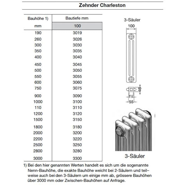 Zehnder Charleston 3200 Heizkörper 23 x 200 x 10 cm