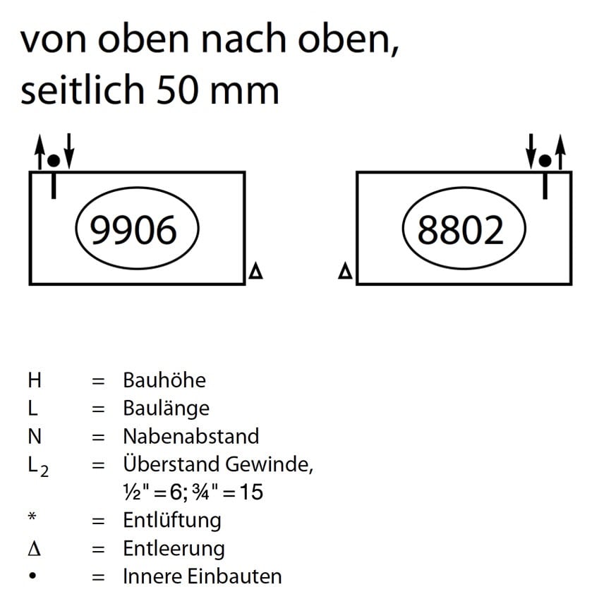 - Anschlüsse 1/2" Innengewinde 5 cm Abstand