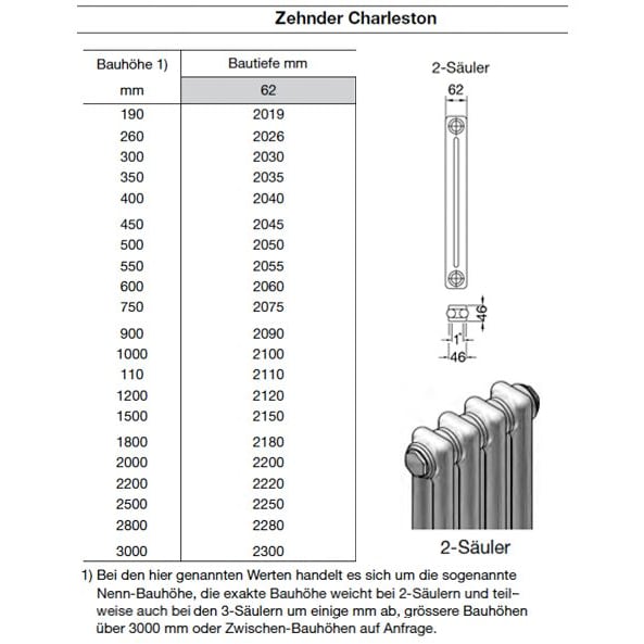 Zehnder Charleston 4200 Heizkörper 46 x 200 x 13,6 cm