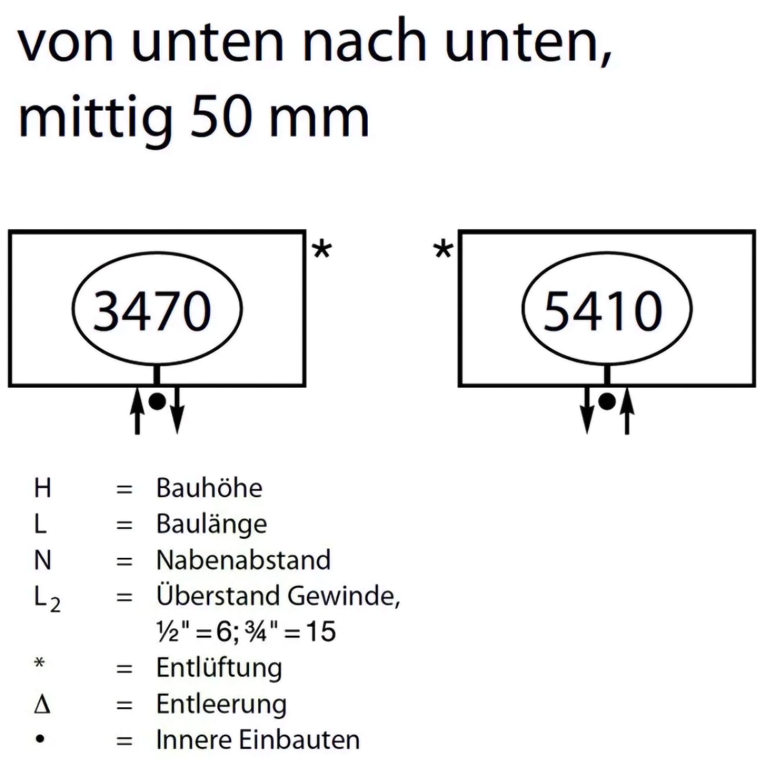 5410 Anschluss von unten nach unten, mittig, Vorlauf links