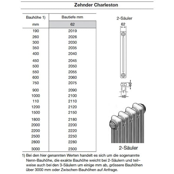 Zehnder Charleston 4055 Heizkörper 138 x 55 x 13,6 cm