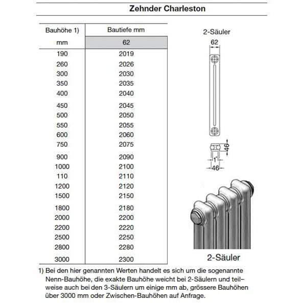 Zehnder Charleston 4055 Heizkörper 138 x 55 x 13,6 cm Completto Anschluss V007