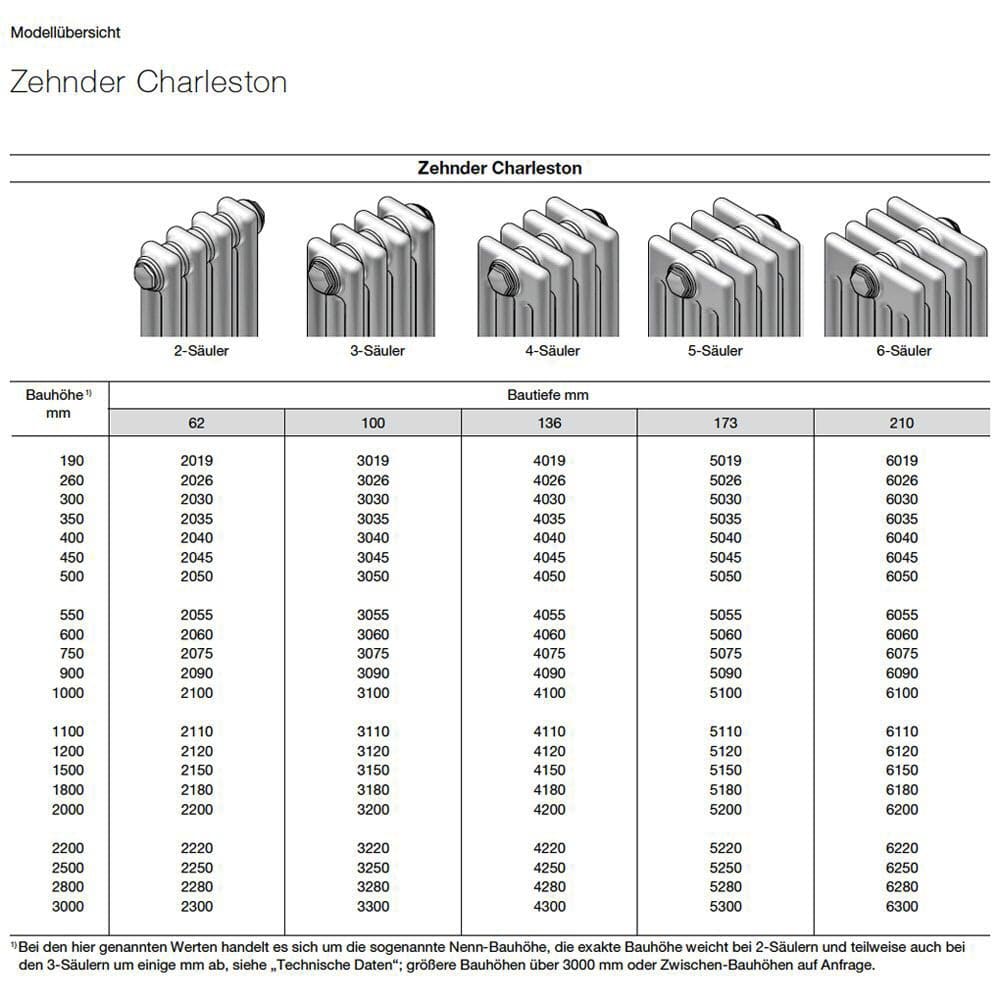 Zehnder Charleston 3060 Heizkörper 138 x 60 x 10 cm mit Anschluss 1270