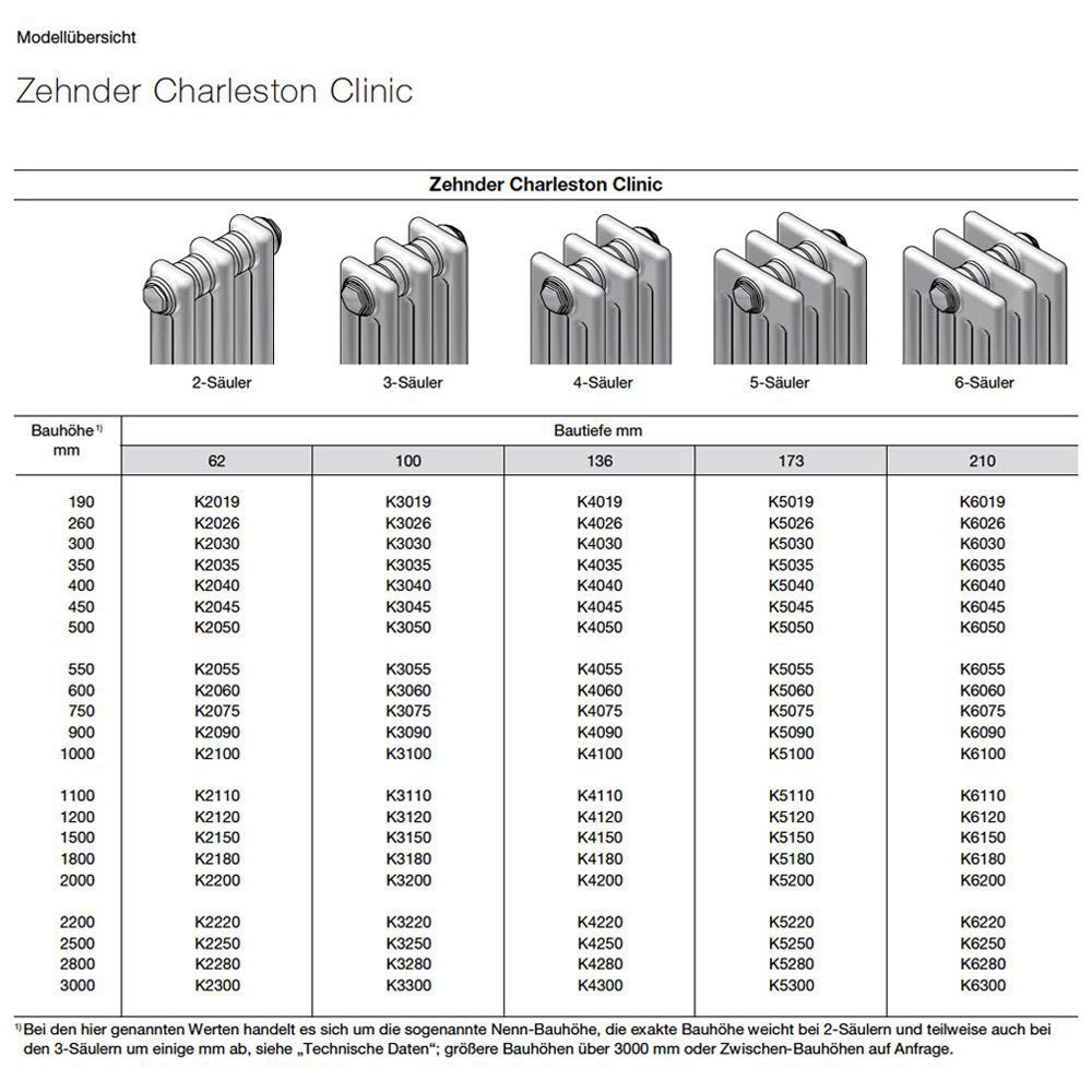 Zehnder Charleston Clinic K2220 69,6 x 6,2 x 220 cm Anschluss S001
