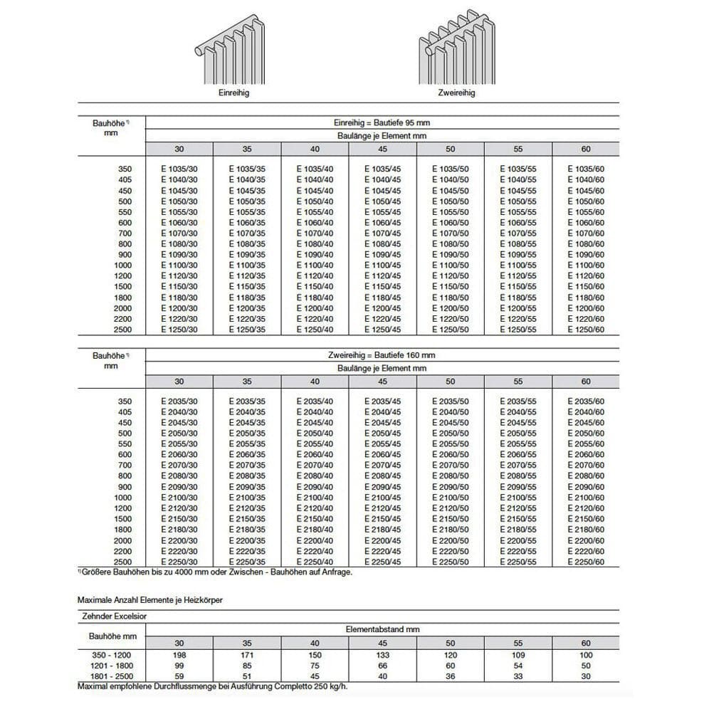Zehnder Excelsior E1200-30 Heizkörper 30 x 200 x 9,5 cm Anschluss 3470