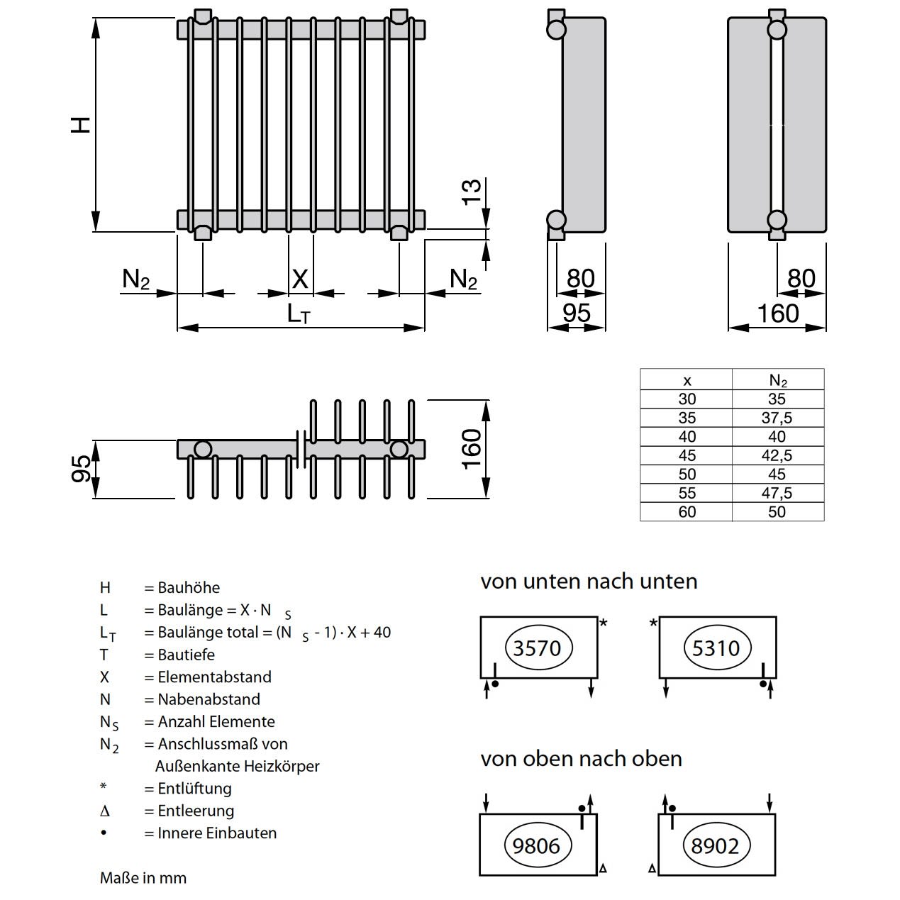 - mit Anschlussart 5310: von unten nach unten, Vorlauf rechts