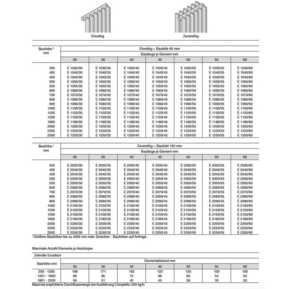 Zehnder Excelsior E2060/40 Heizkörper 80 x 60 cm, mit angeschweißten Fußkonsolen