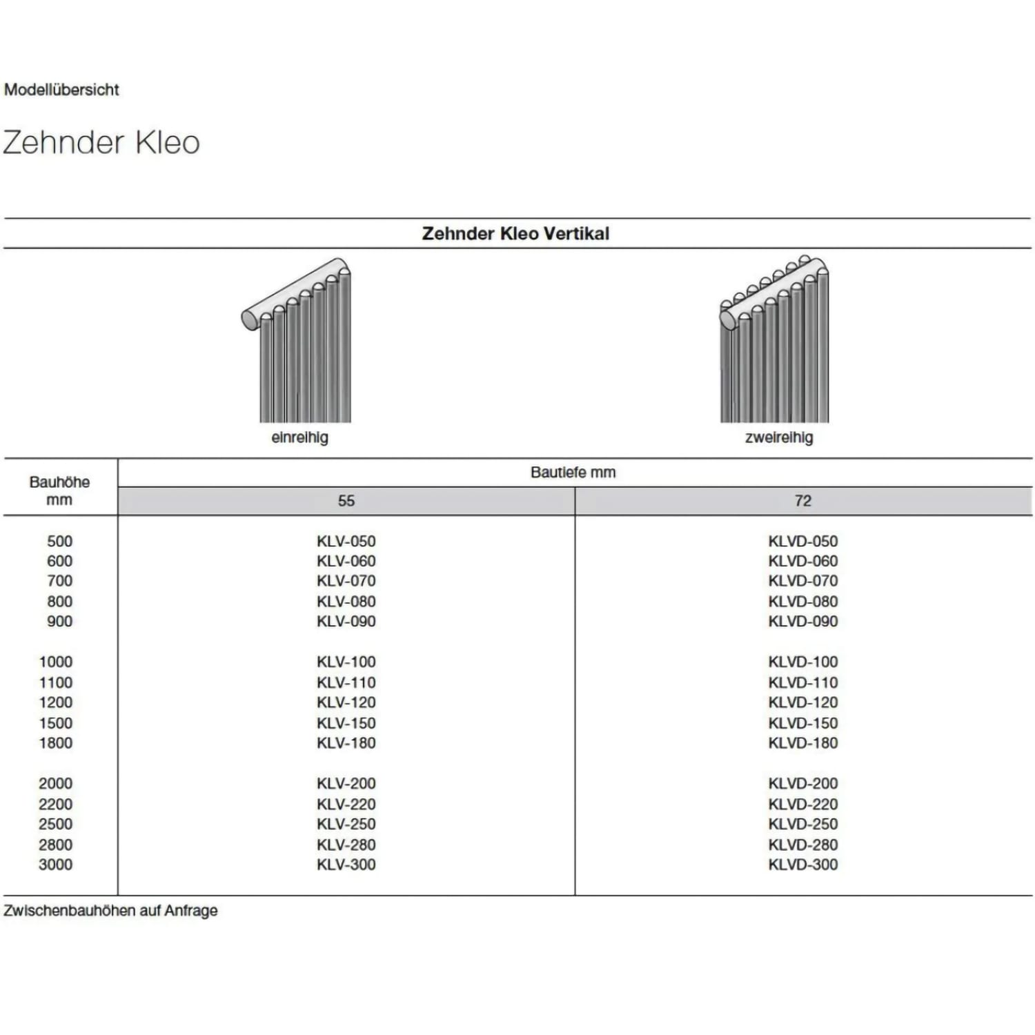 Zehnder Kleo KLV-090 Heizkörper 29,9 x 5,5 x 90 cm mit Anschluss 5410