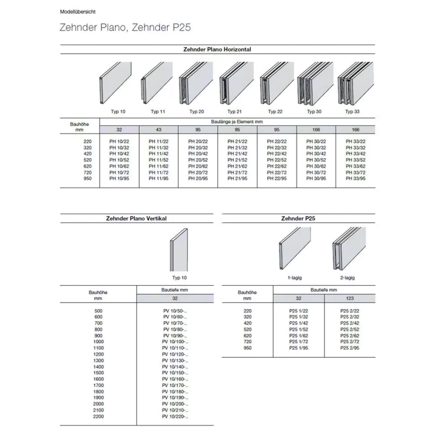 Zehnder Plano PH 2072 Flachheizkörper 170 x 9,5 x 72 cm Anschluss S001