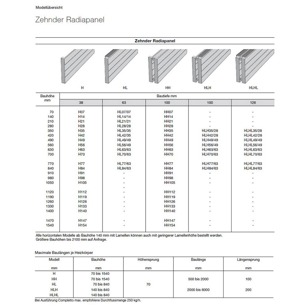 Zehnder Radiapanel Heizwand Horizontal 1-lagig 100 x 3,8 x 35 cm