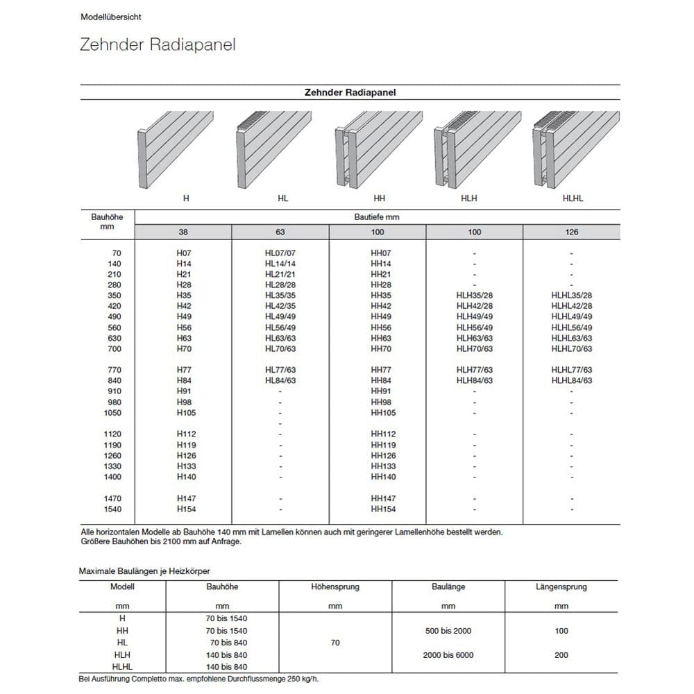 Zehnder Radiapanel Heizwand Horizontal 1-lagig 100 x 6,3 x 63 cm Anschluss V514