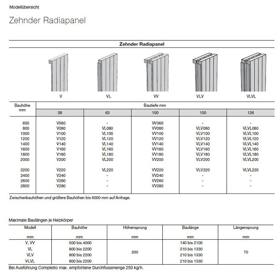 Zehnder Radiapanel Heizwand Vertikal 1-lagig 49 x 3,8 x 120 cm Anschluss 3570