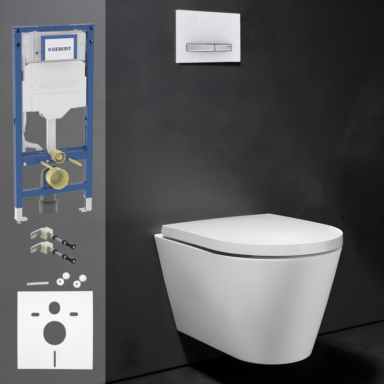 Geberit DuoFix Element für Wand-WC mit LAUFEN Kartell Wand WC PACK, Tiefspüler spülrandlos