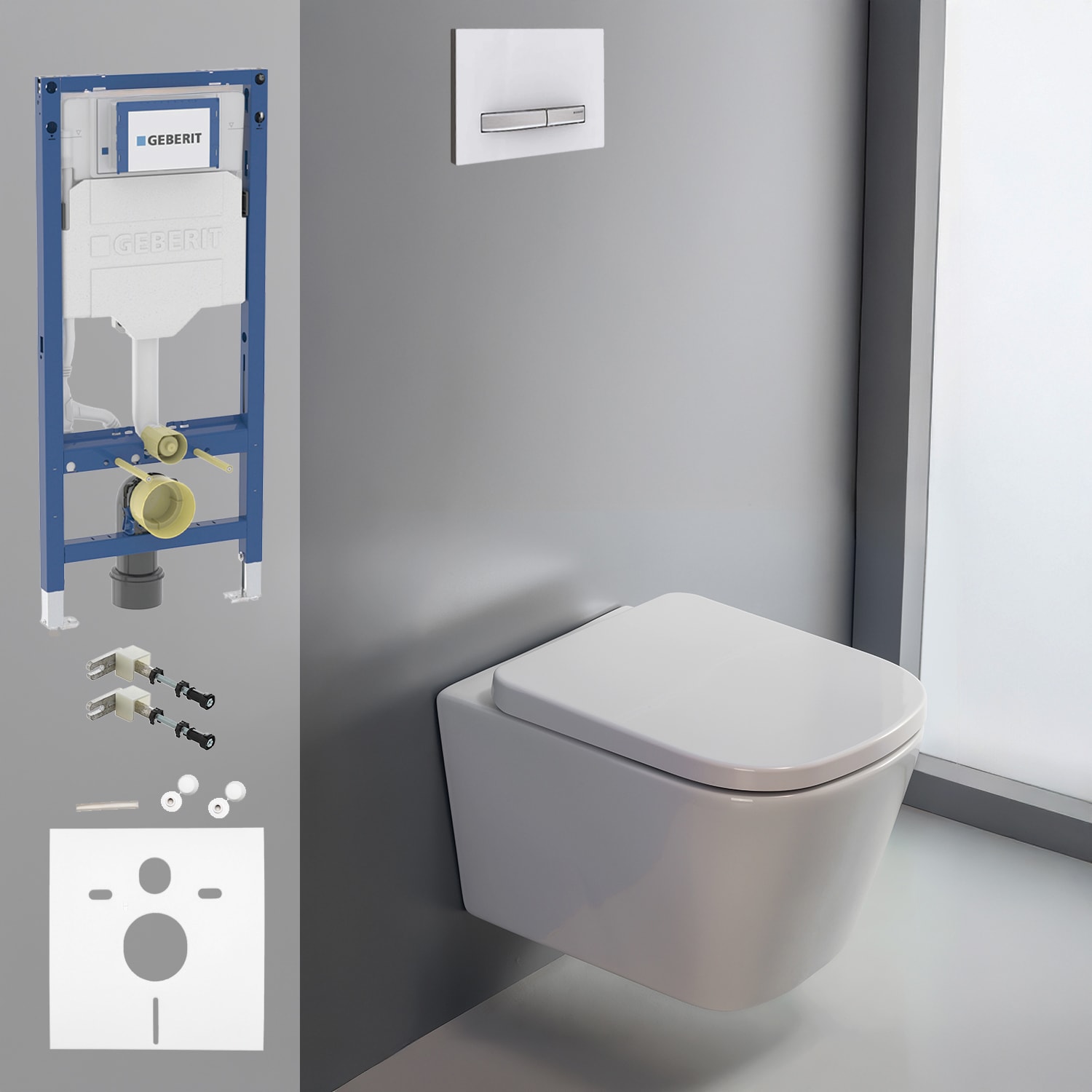 Geberit DuoFix Element für Wand-WC mit Kronenbach Cube kompakt Wand-WC-Set spülrandlos inkl. WC-Sitz