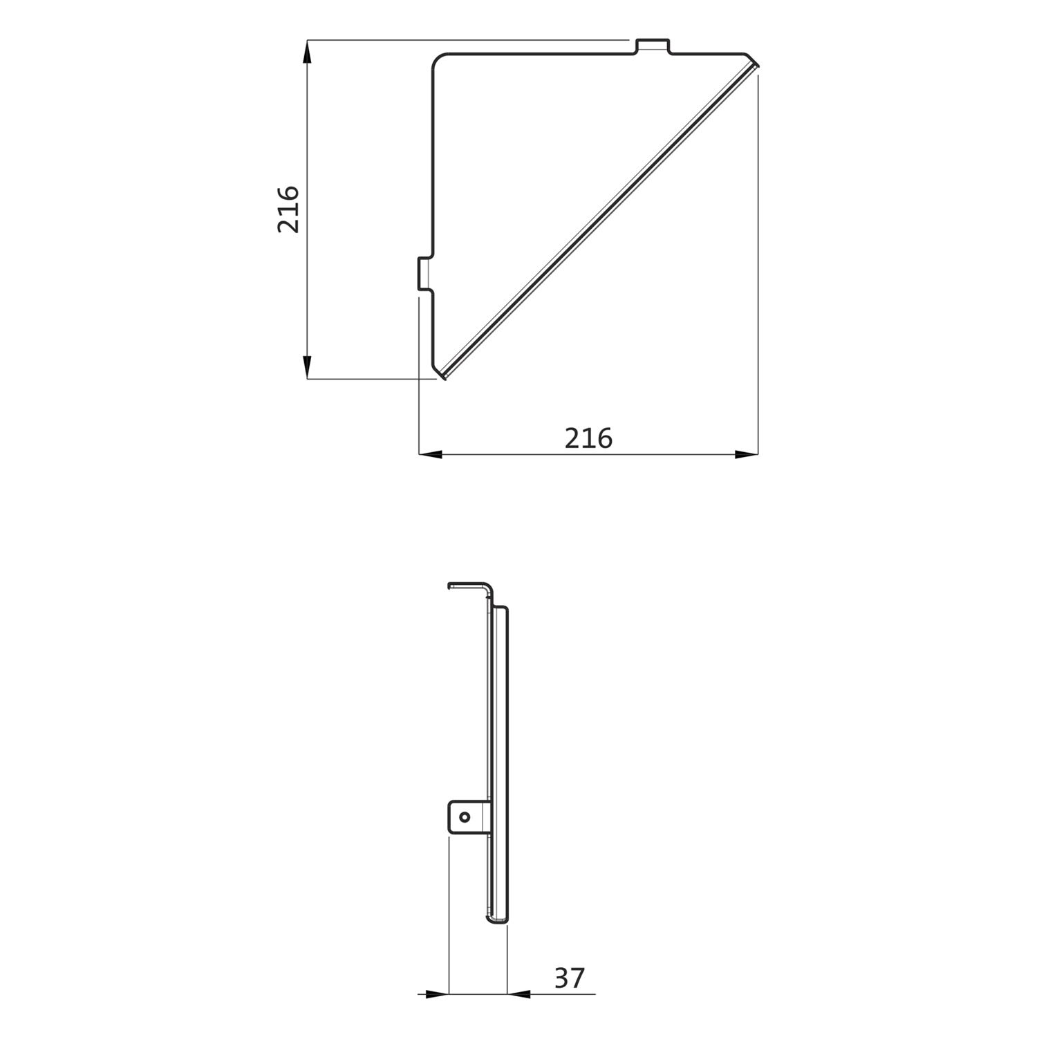 B: 21,6 T: 21,6 H: 3,7 cm