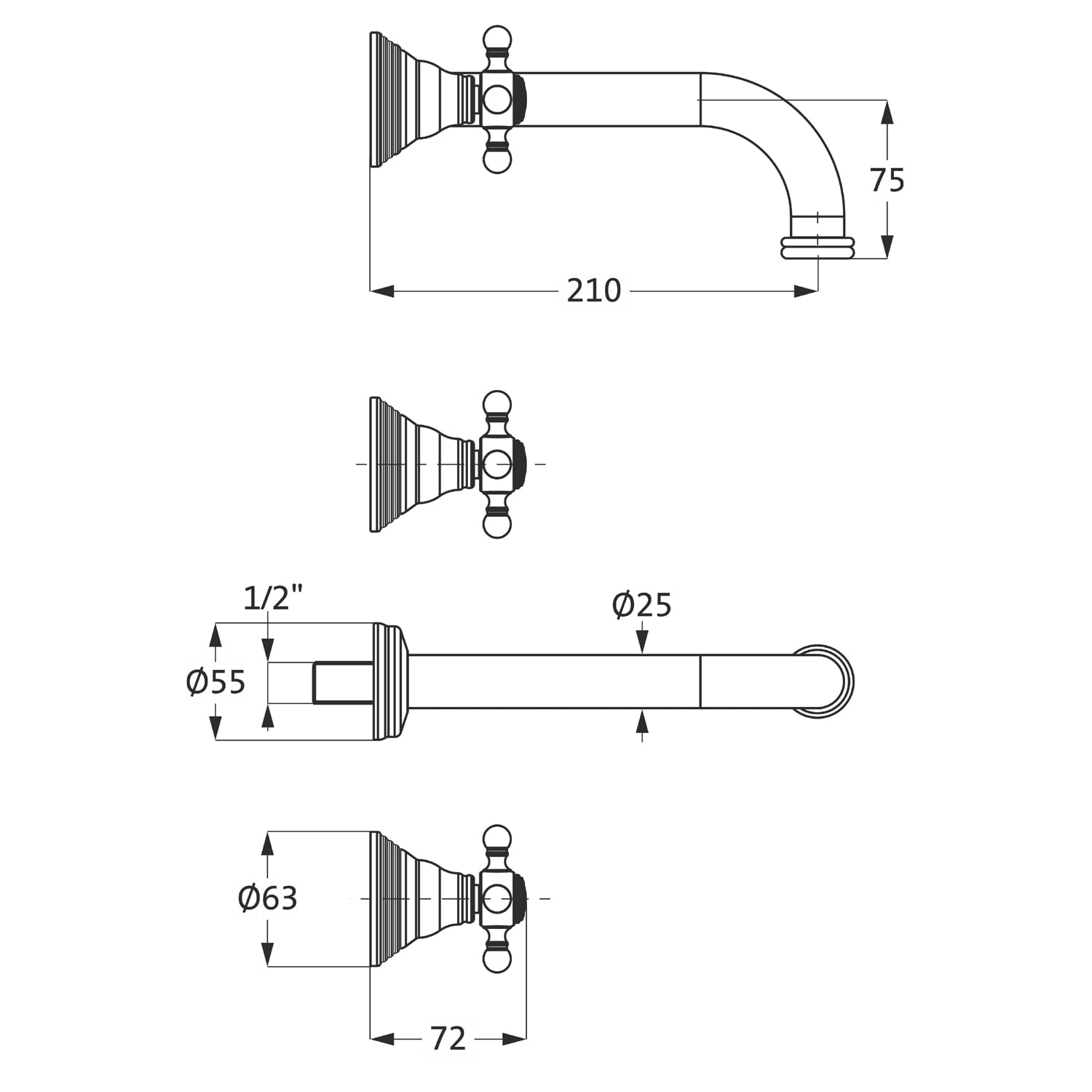 Herzbach ANAIS CLASSIC Waschtisch-Wandbrückenbatterie Farbset Kreuzgriff