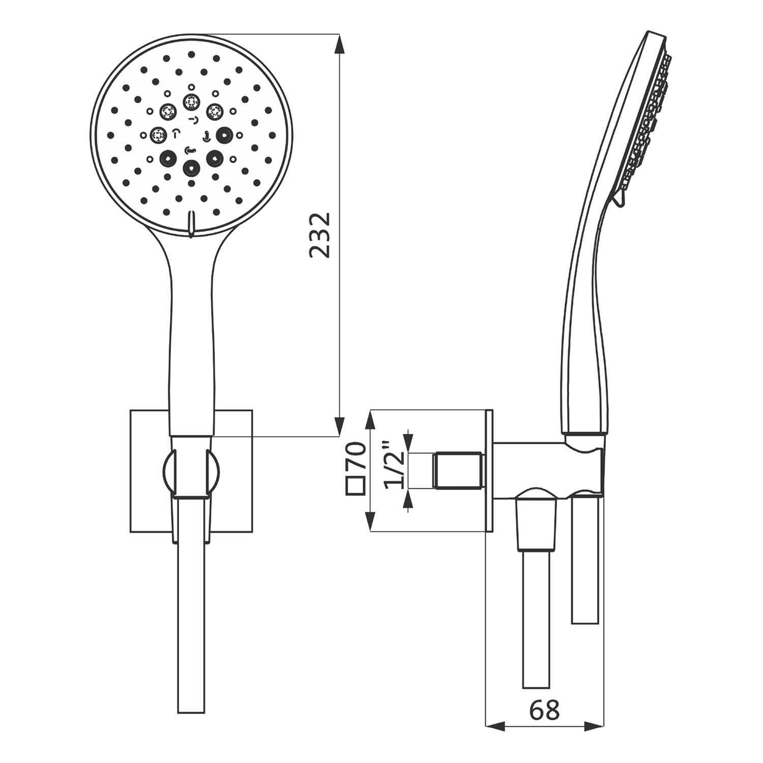 Herzbach LIVING SPA Brauseset mit Wandanschlussbogen und Multifunktion-Handbrause