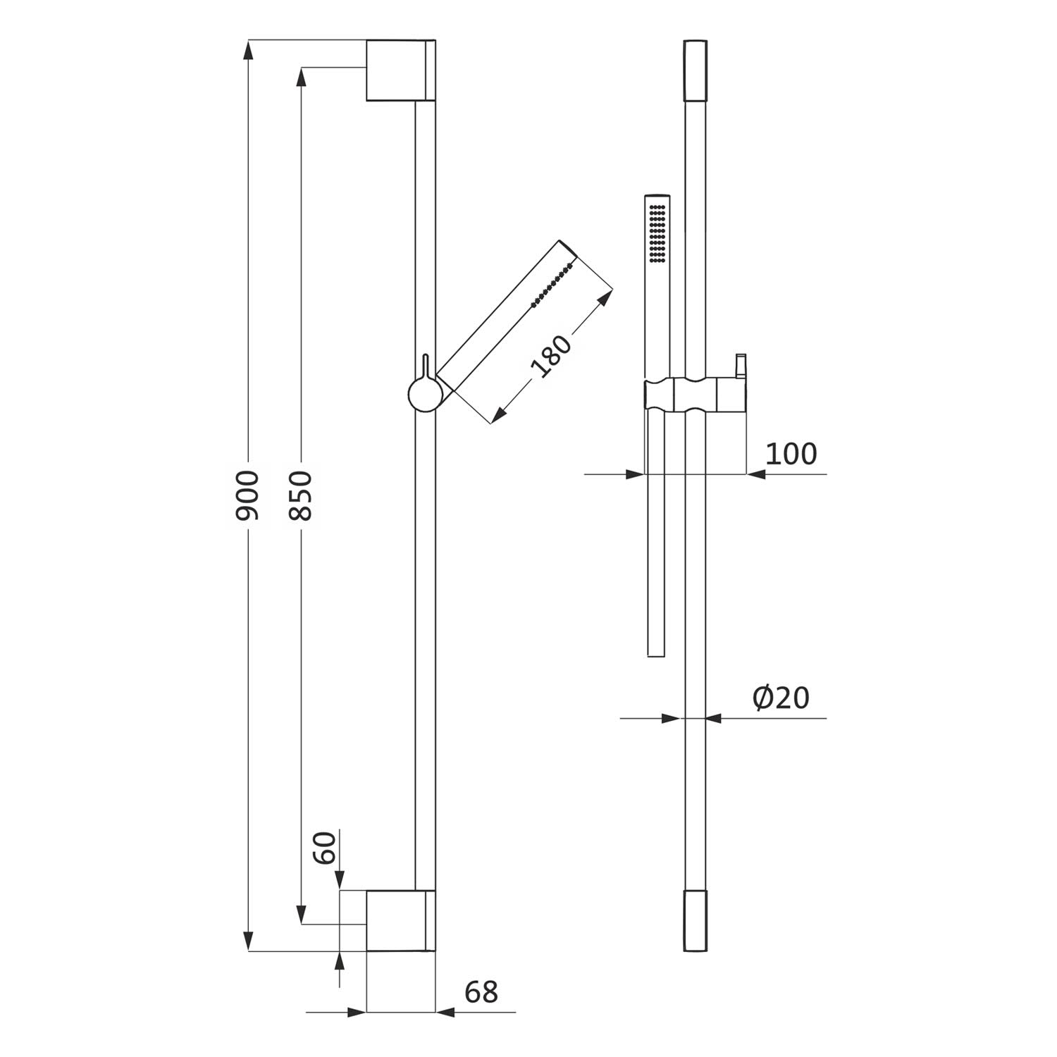 Herzbach LIVING SPA Brauseset Slide M 90 cm mit Stabhandbrause