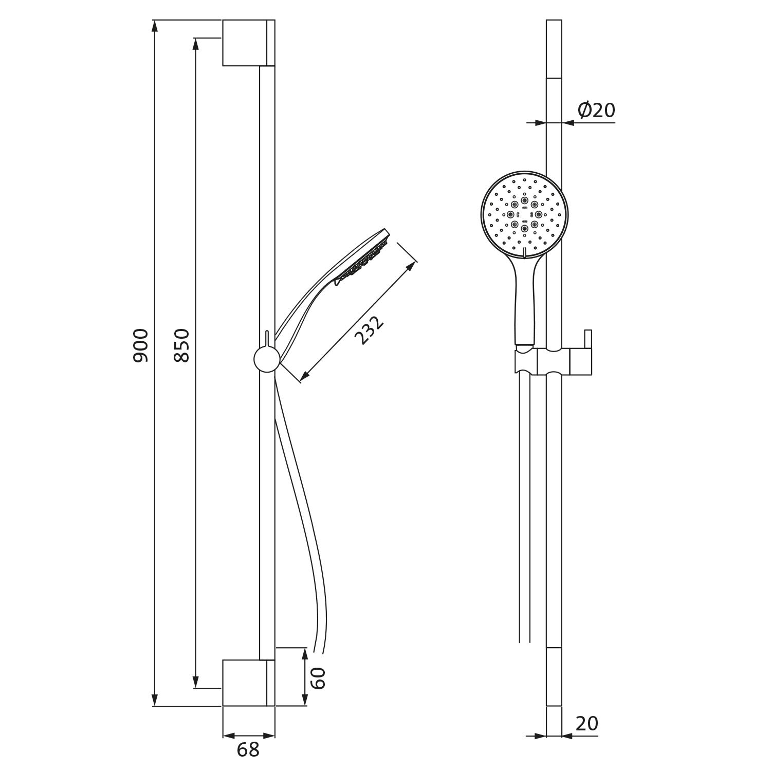 Herzbach LIVING SPA Brauseset Slide M 90 cm mit Handbrause Multifunktion