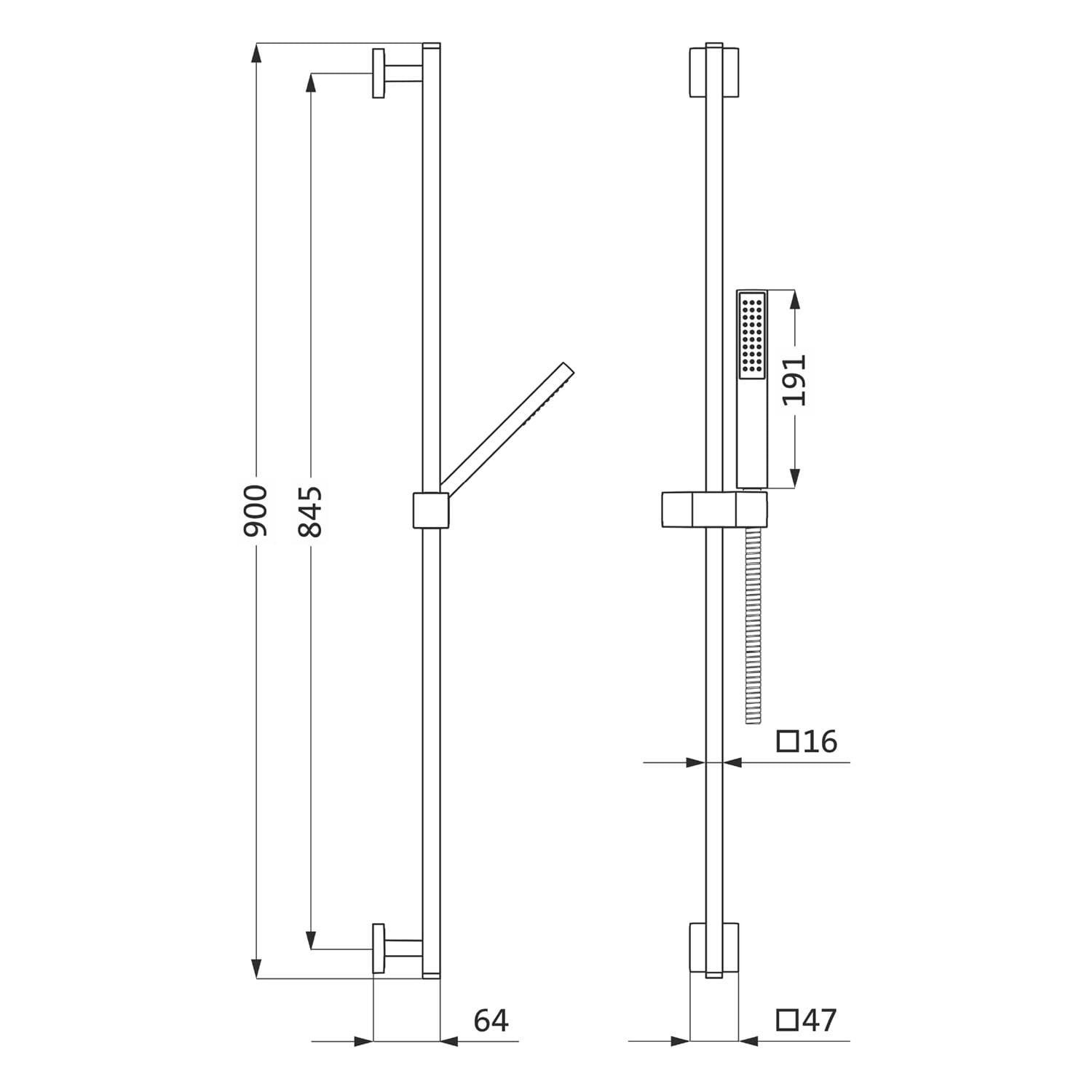 Herzbach LIVING SPA Wandstangenset 90 cm eckig, mit Stabhandbrause