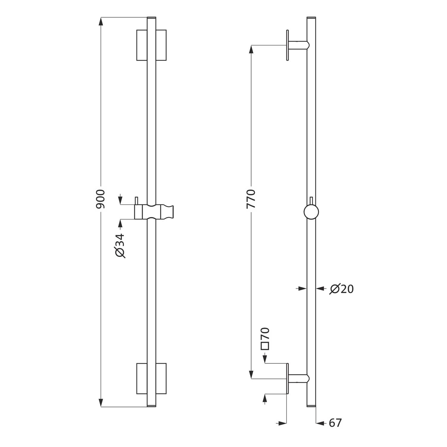 Herzbach LIVING SPA Brausestange 90 cm eckig