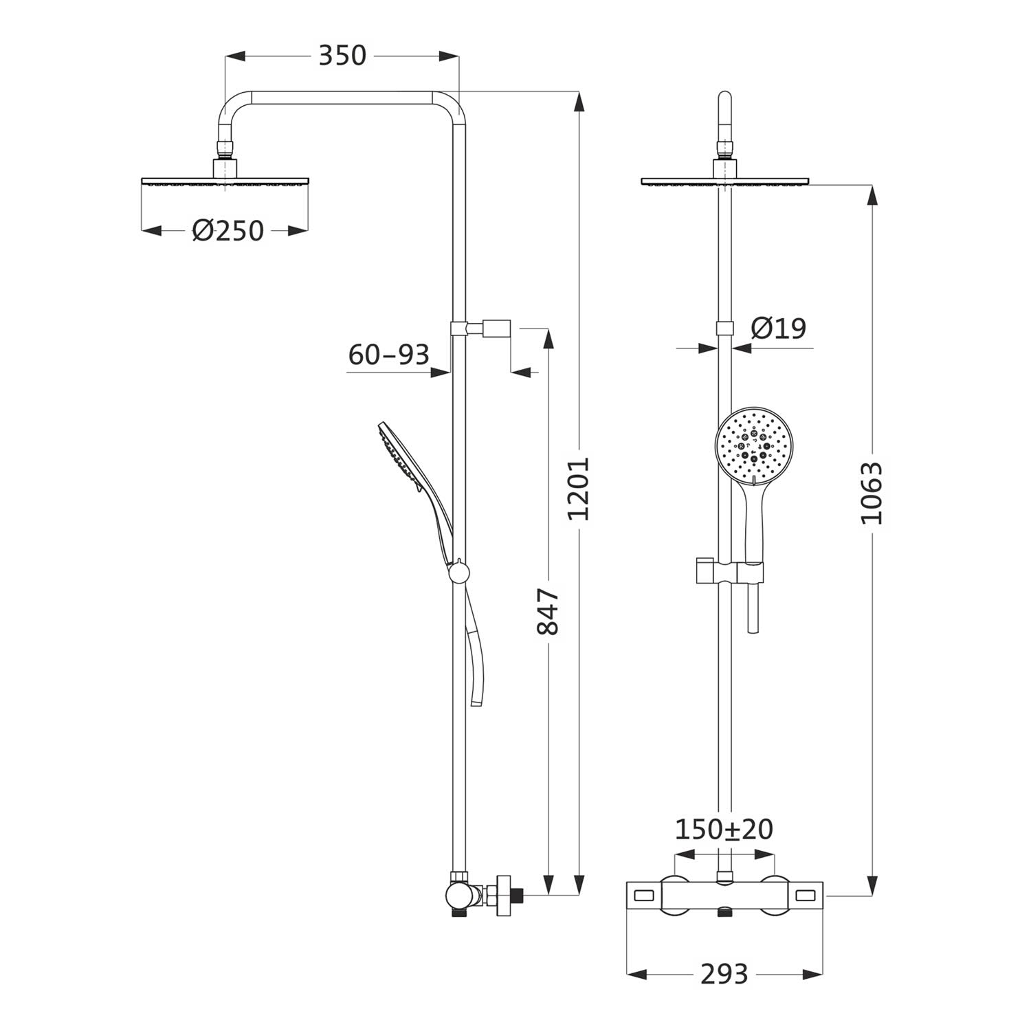 Herzbach LIVING SPA Duschsäule mit Regenbrause 25 cm rund, mit Handbrause
