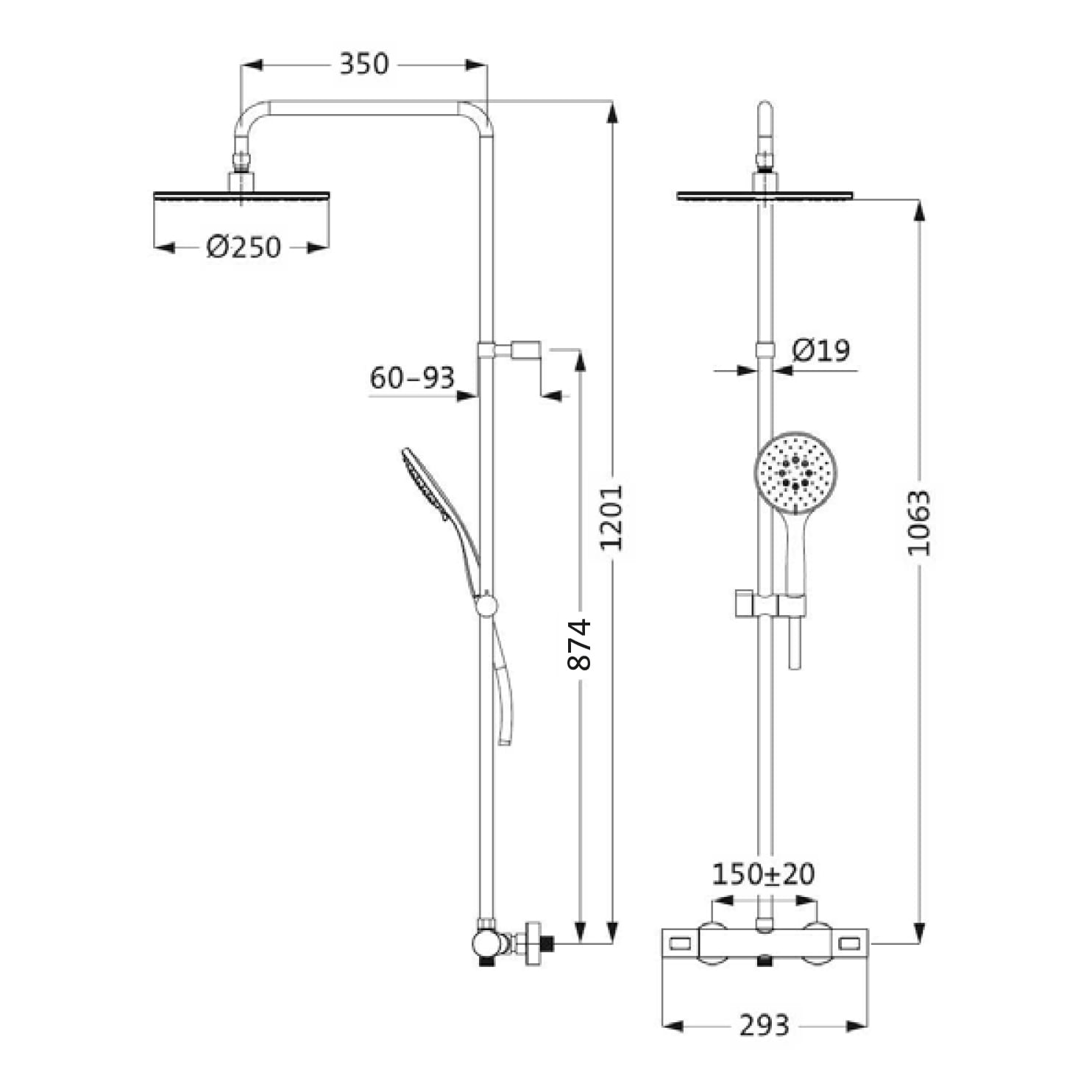 Herzbach LIVING SPA Duschsäule mit Regenbrause 25 cm rund, mit Handbrause