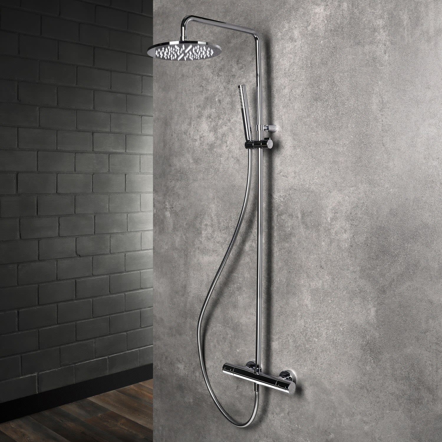 Herzbach LIVING SPA Duschsäule mit Regenbrause 25 cm rund, mit Stabhandbrause