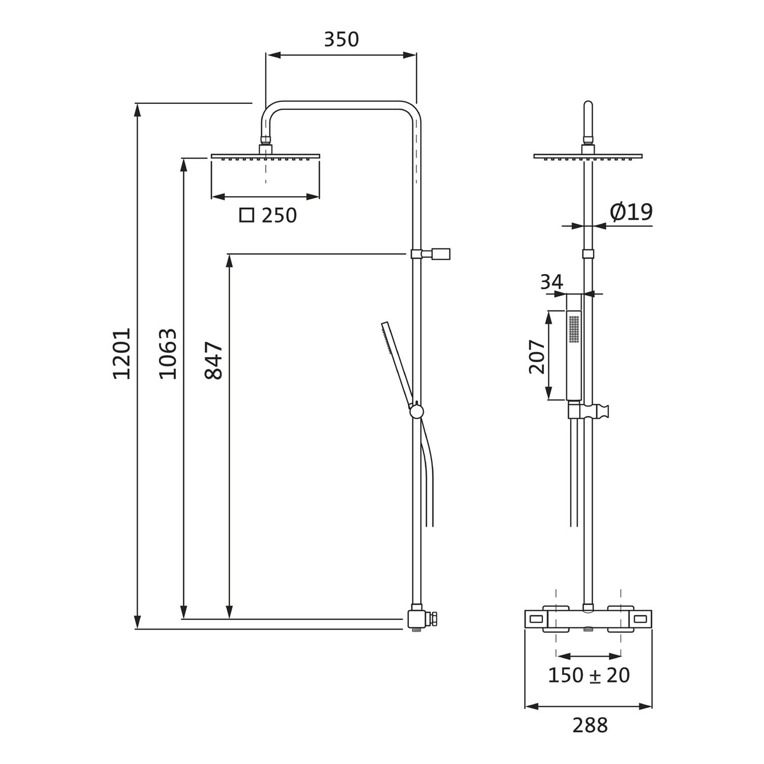 - Ausladung Brausearm 35 cm (nicht schwenkbar)
