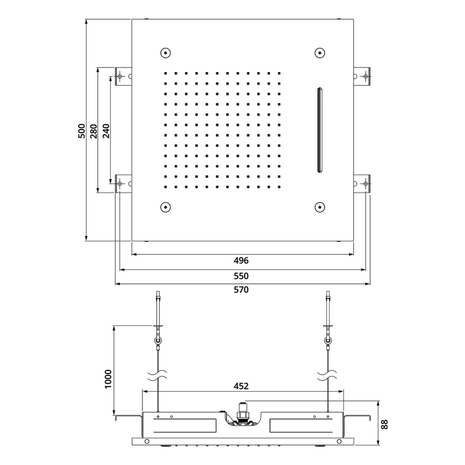 Herzbach LIVING SPA Regenbrause 50 x 50 cm Multifunktion 3, Deckenmontage