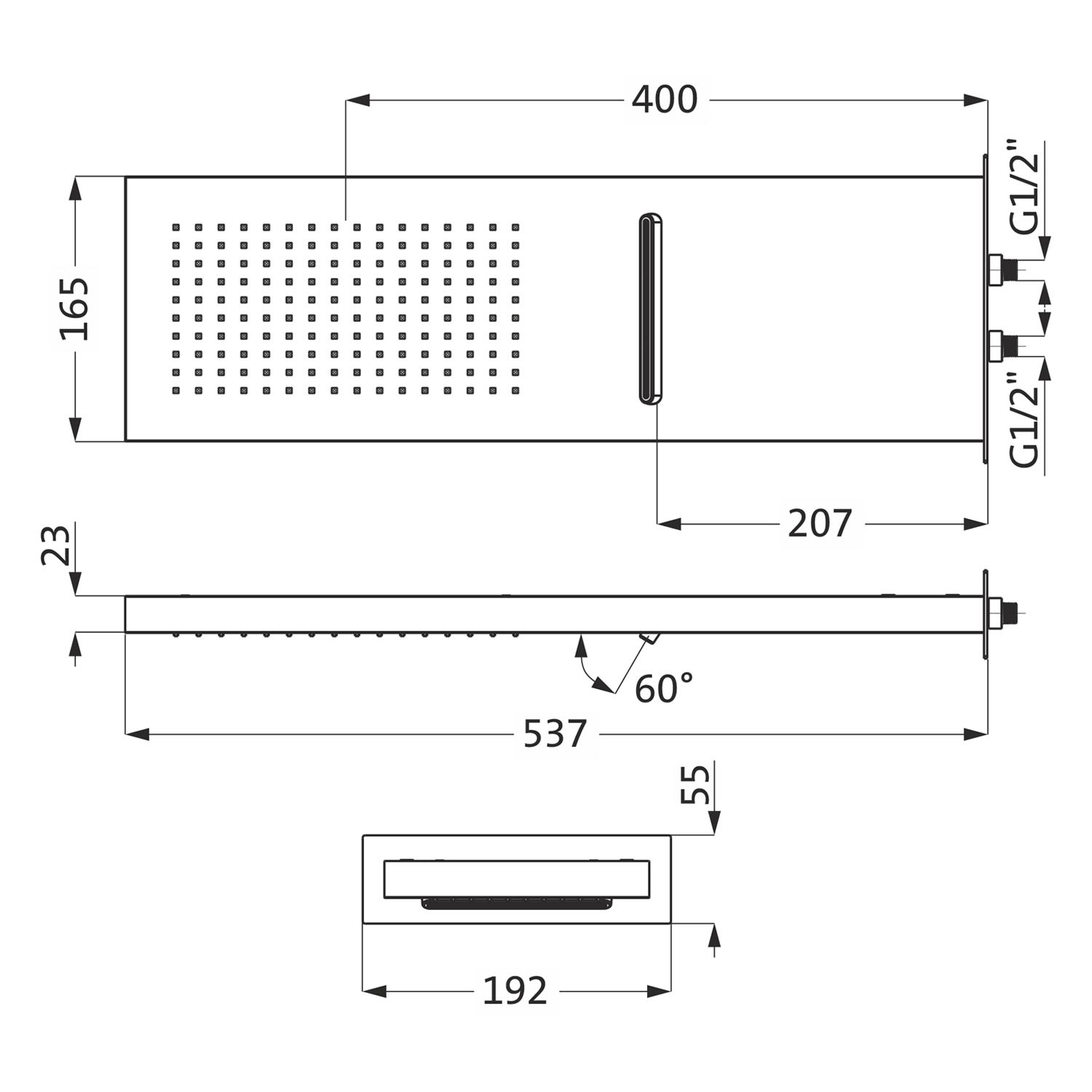 Herzbach LIVING SPA Regenbrause 53,7 x 16,5 cm Multifunktion 2, Wandmontage