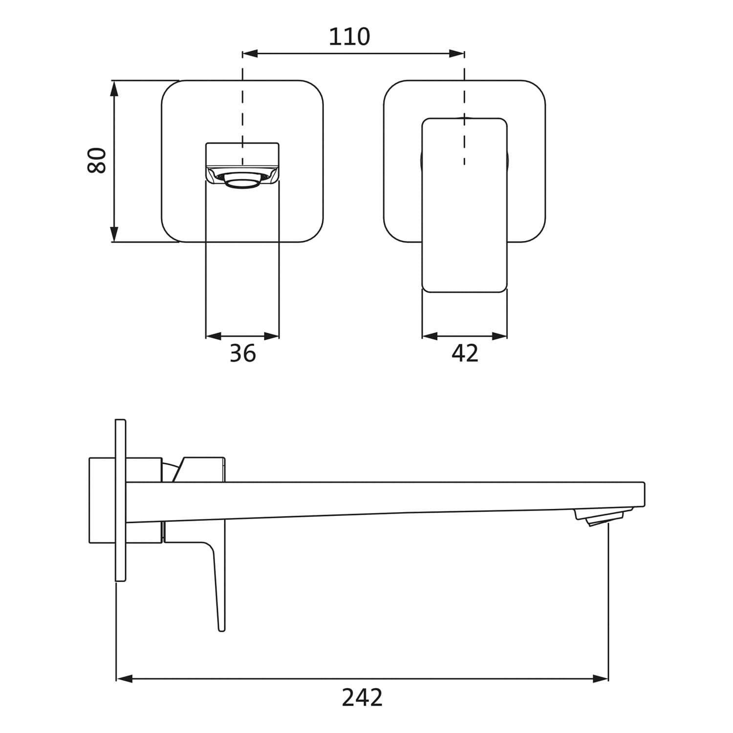 Herzbach CEO BLACK Waschtisch-Wandbatterie Unterputz Farbset mit 2 Blenden 24 cm