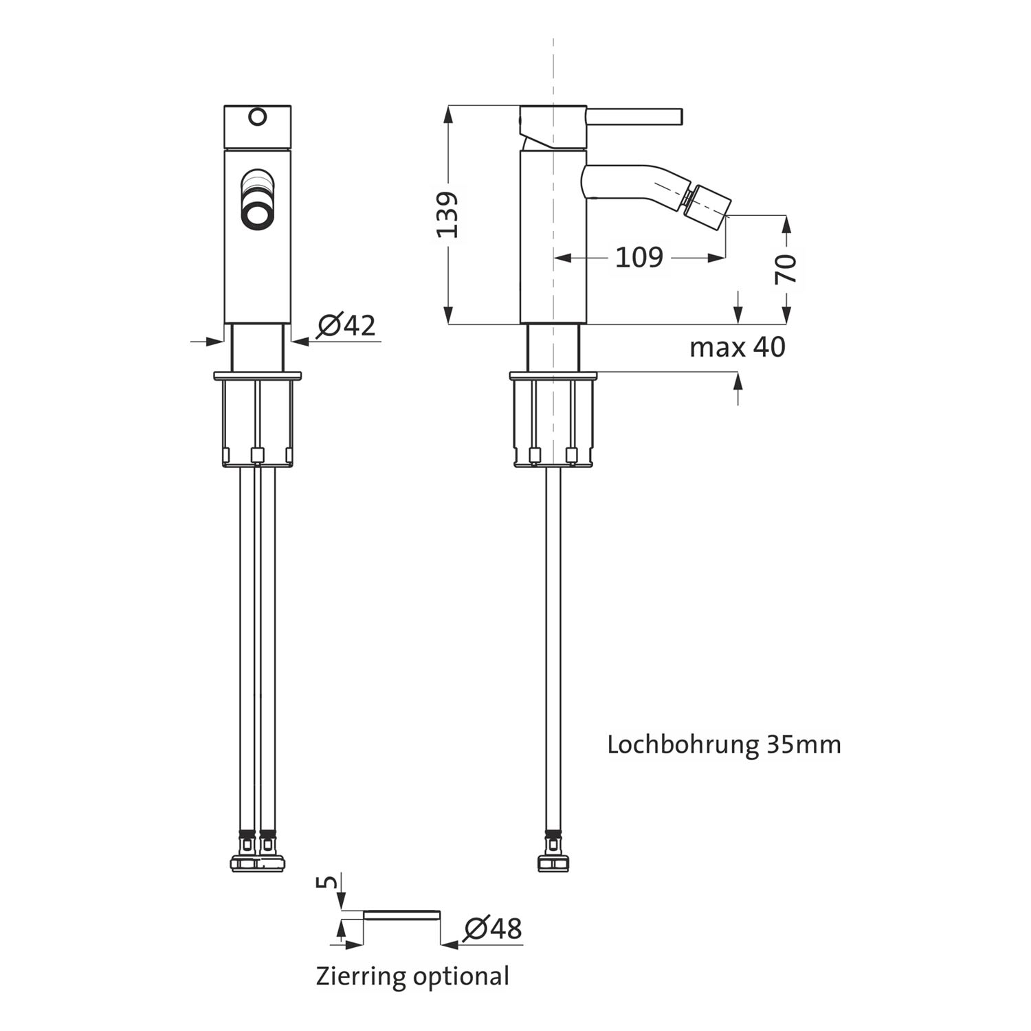 Herzbach DEEP GREY Bidet-Einlochbatterie ohne Ablaufgarnitur