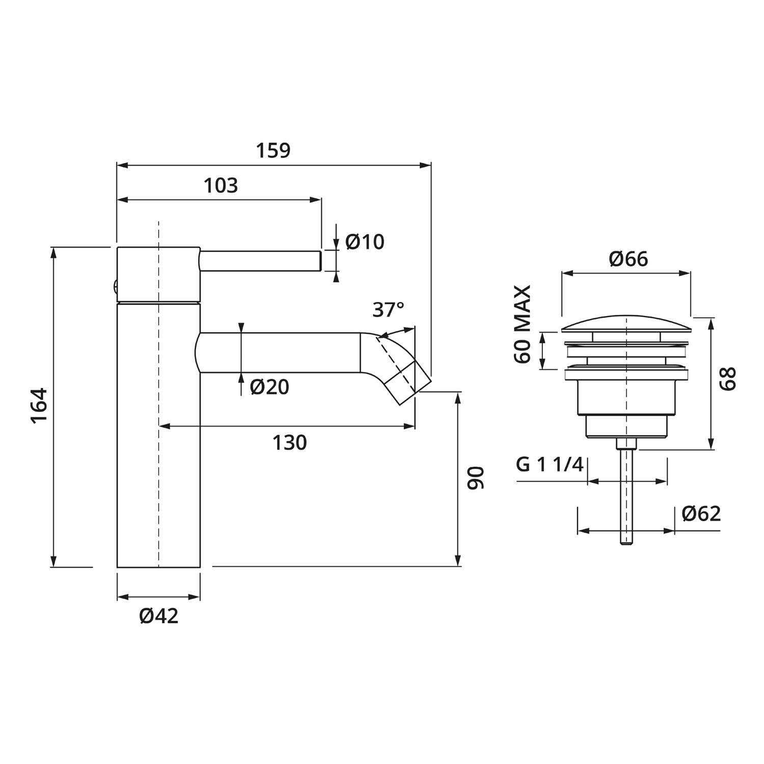 Herzbach DEEP IX Waschtischmischer M-Size 13 cm mit PUSH-Ablaufventil
