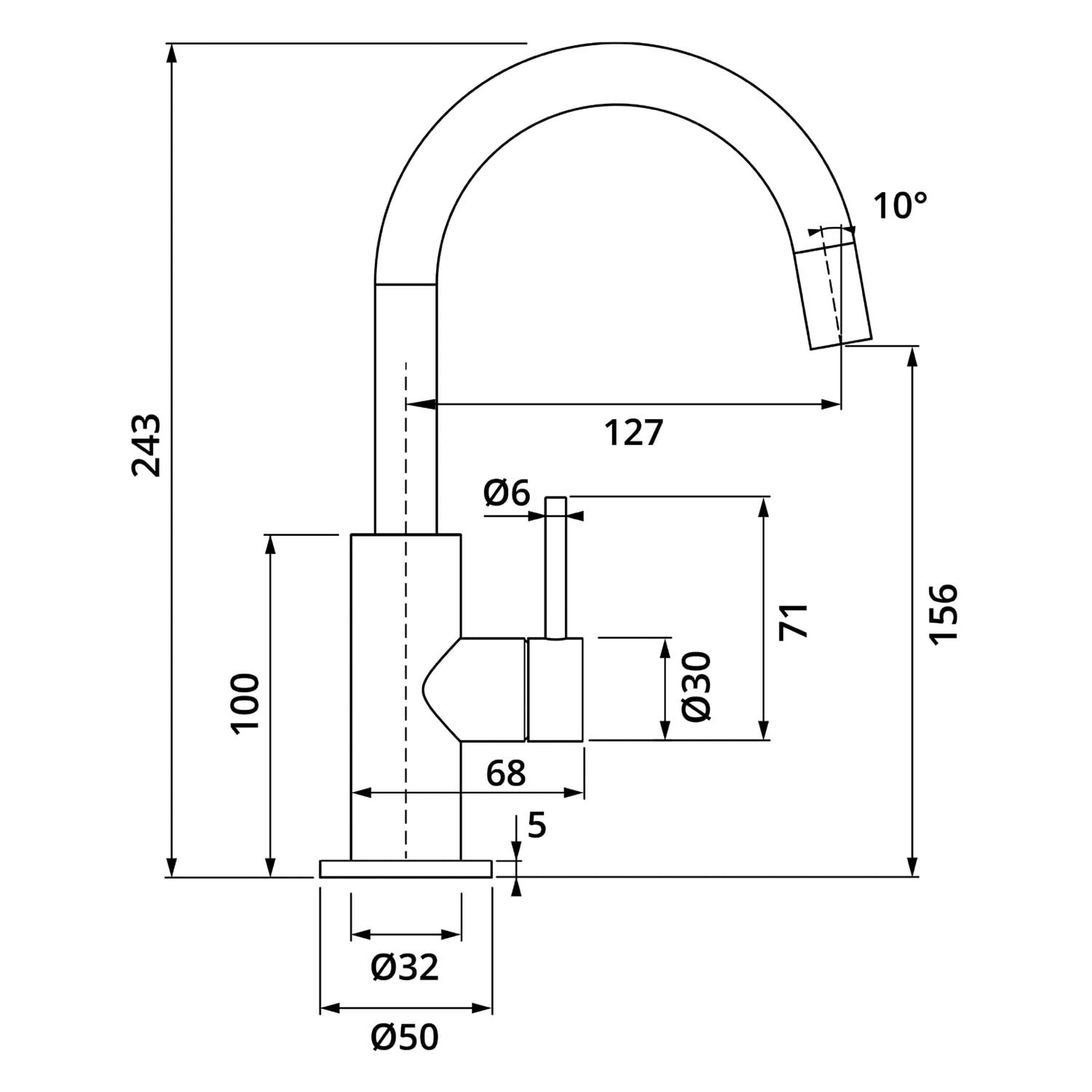 Herzbach DEEP IX Waschtischmischer Slim M-Size Griff seitlich ohne Ablaufgarnitur