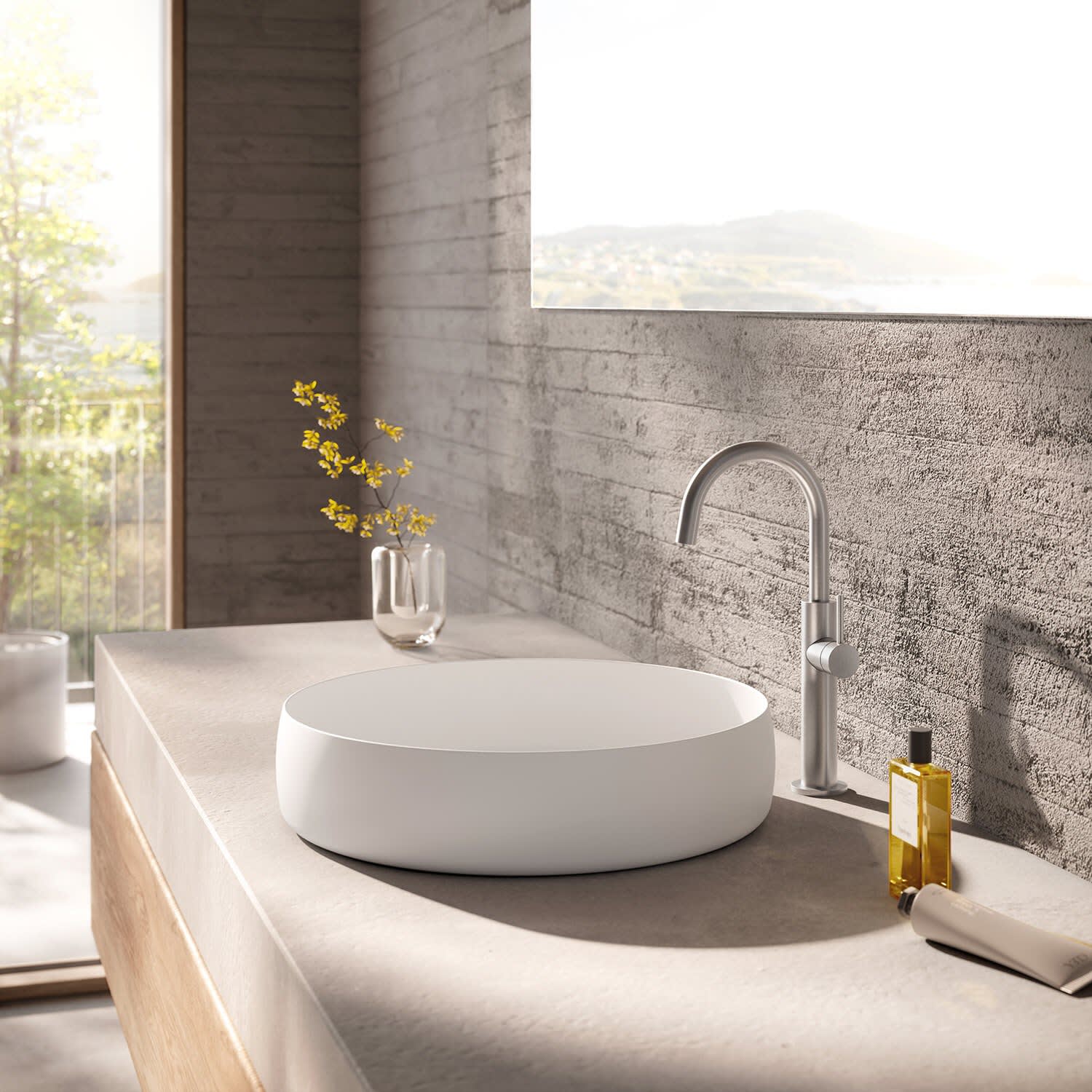 - mit erhöhtem Schaft für freistehende Waschschalen