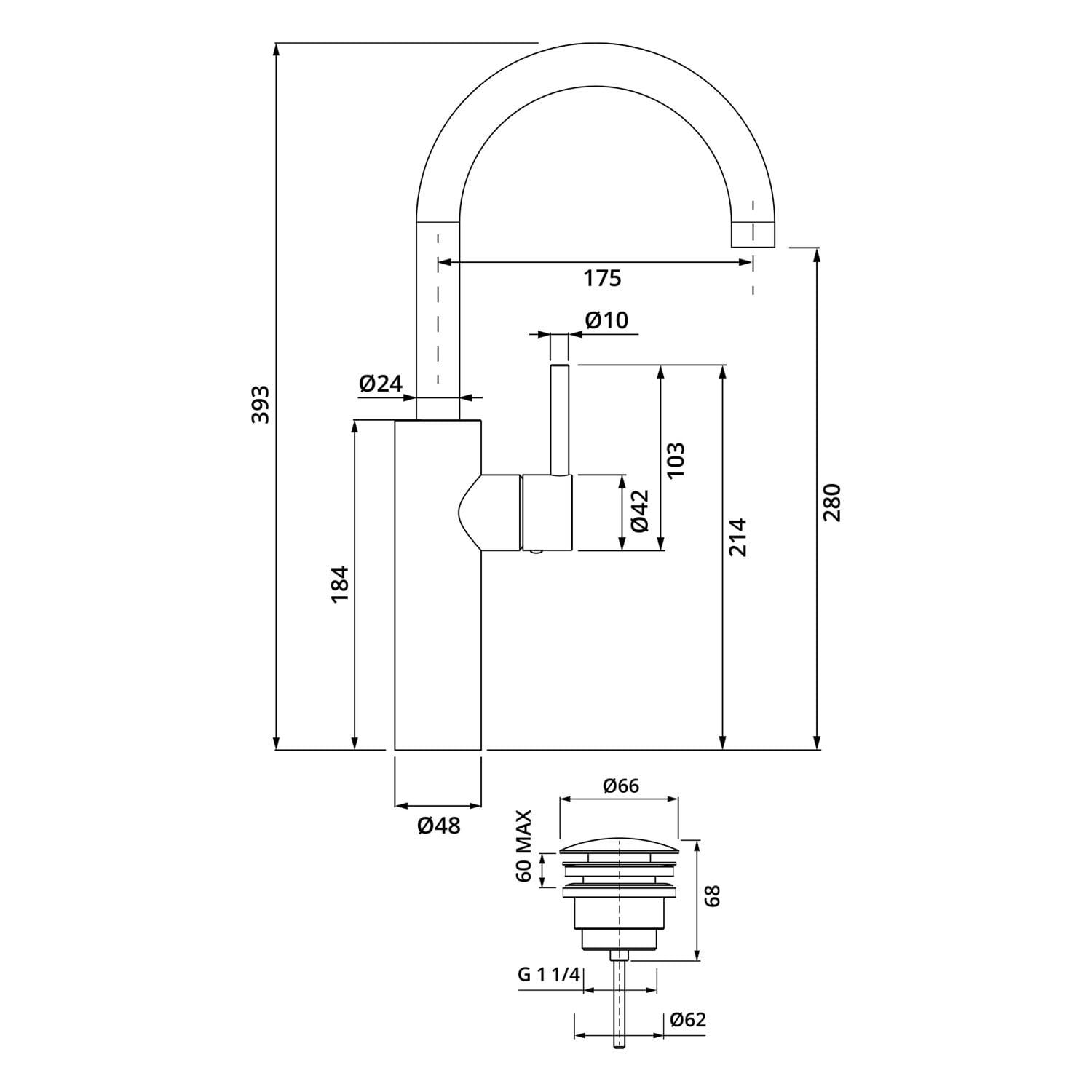 Herzbach DEEP IX Waschtischmischer XL-Size Griff seitlich mit PUSH-Ablaufventil