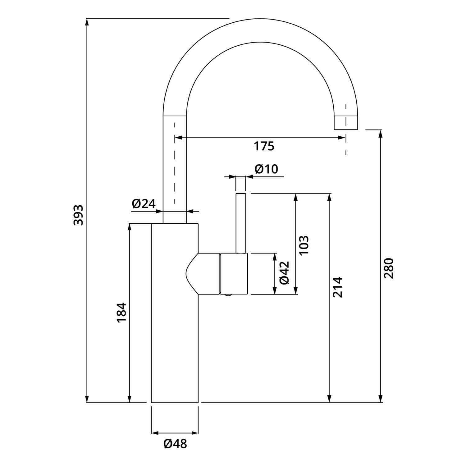 Herzbach DEEP IX Waschtischmischer XL-Size Griff seitlich ohne Ablaufgarnitur