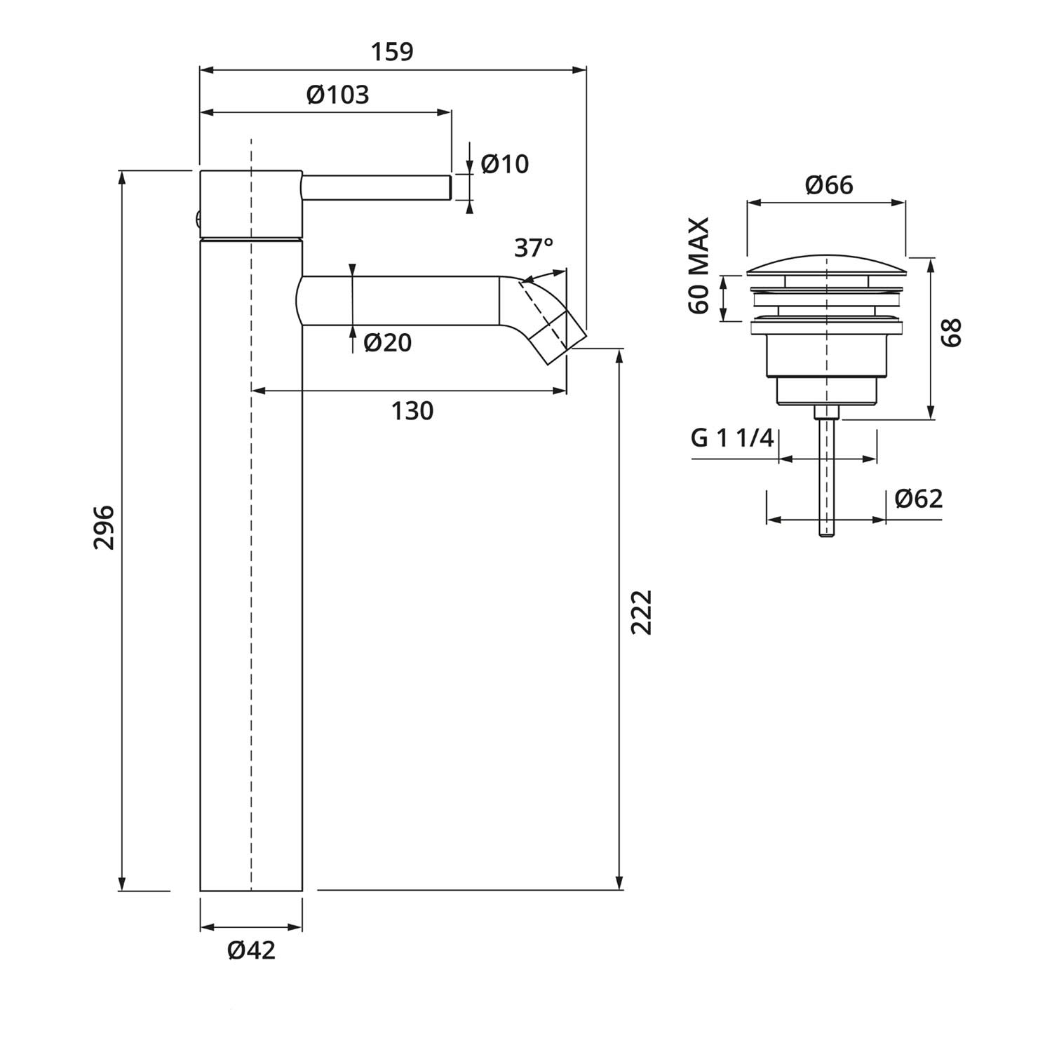 Herzbach DEEP IX Waschtischmischer XL-Size 13 cm mit PUSH-Ablaufventil