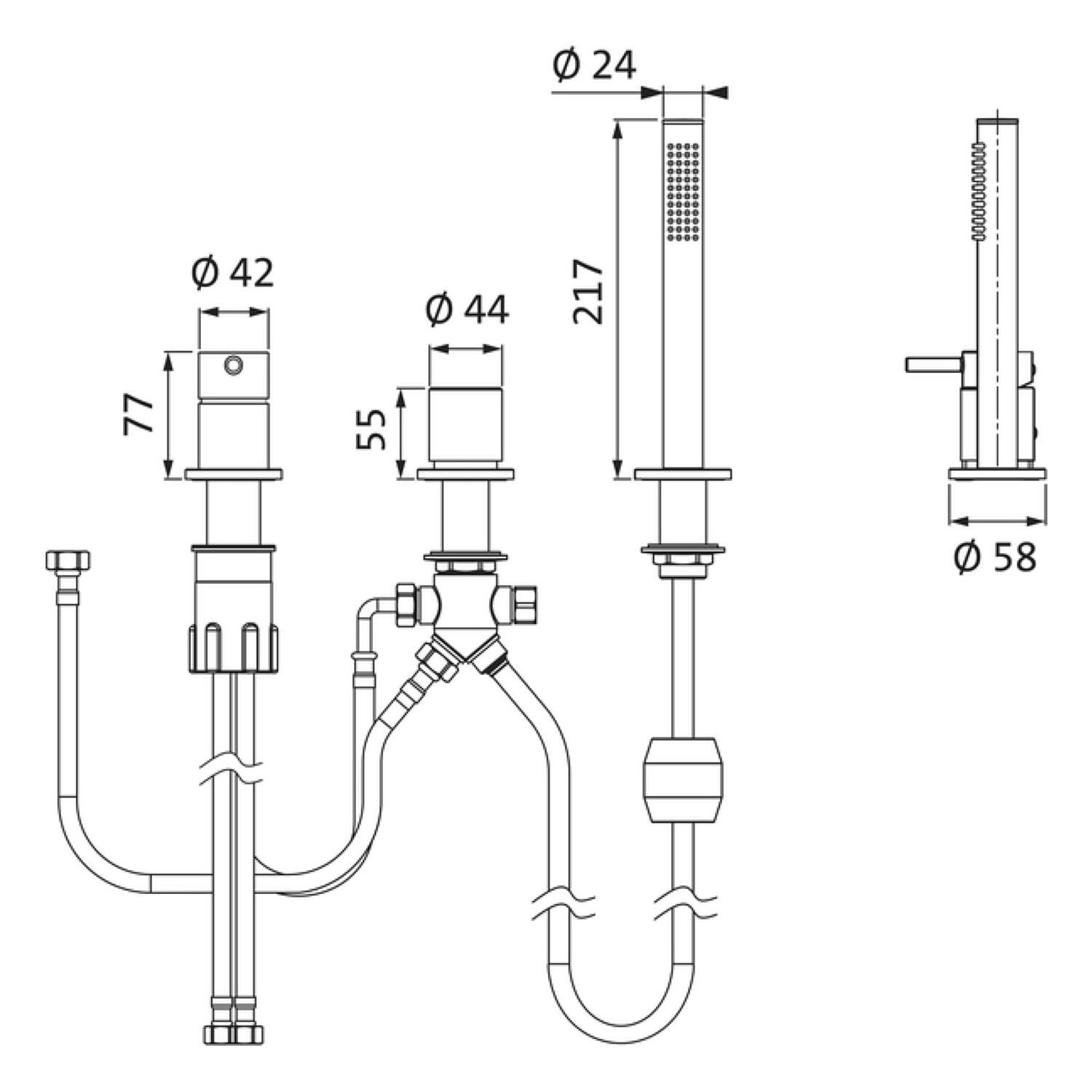 - Flexschlauch mit 1/2" IG zum Anschluss einer externen Wannenbefüllung