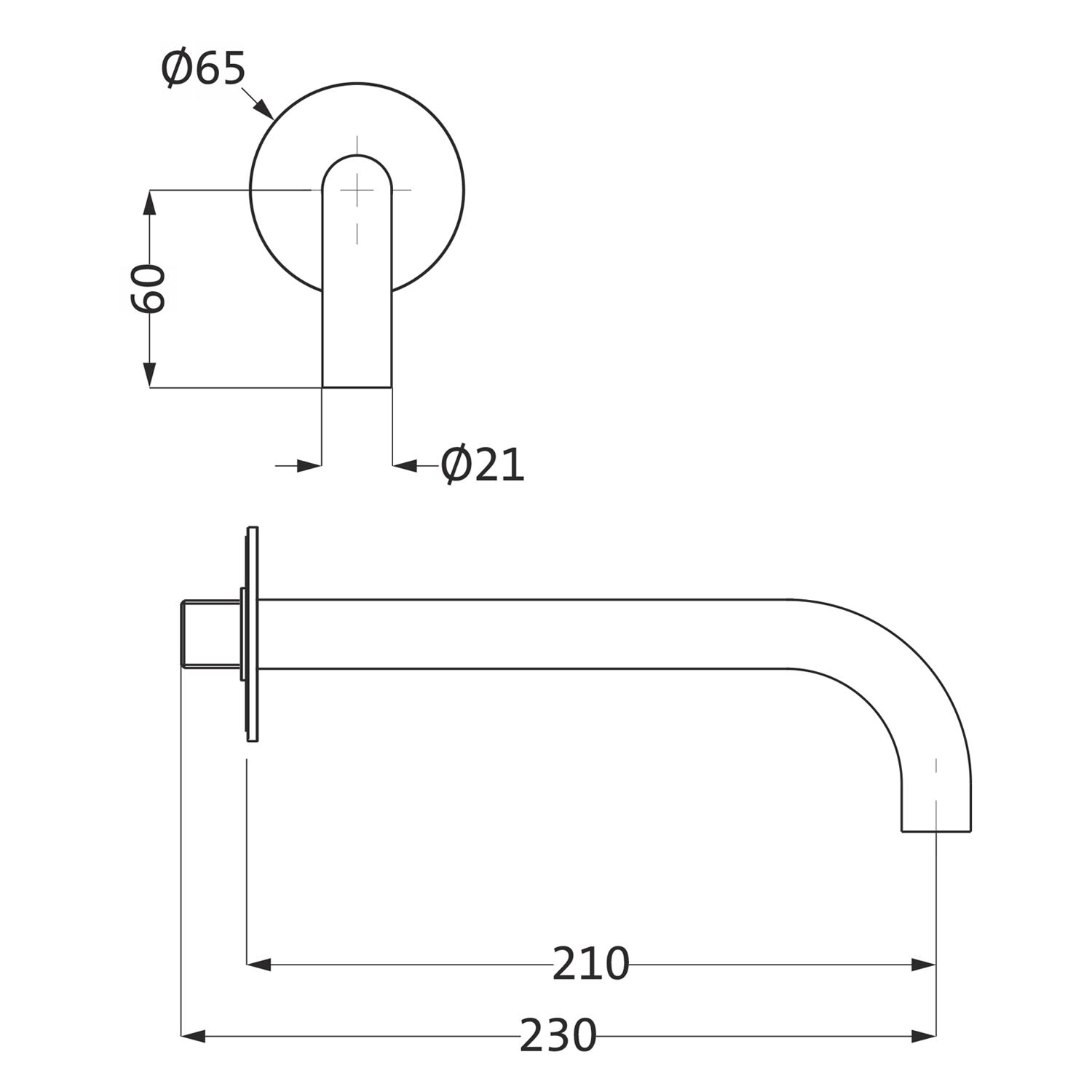 Herzbach DEEP WHITE Wandauslauf, Ausladung 21 cm