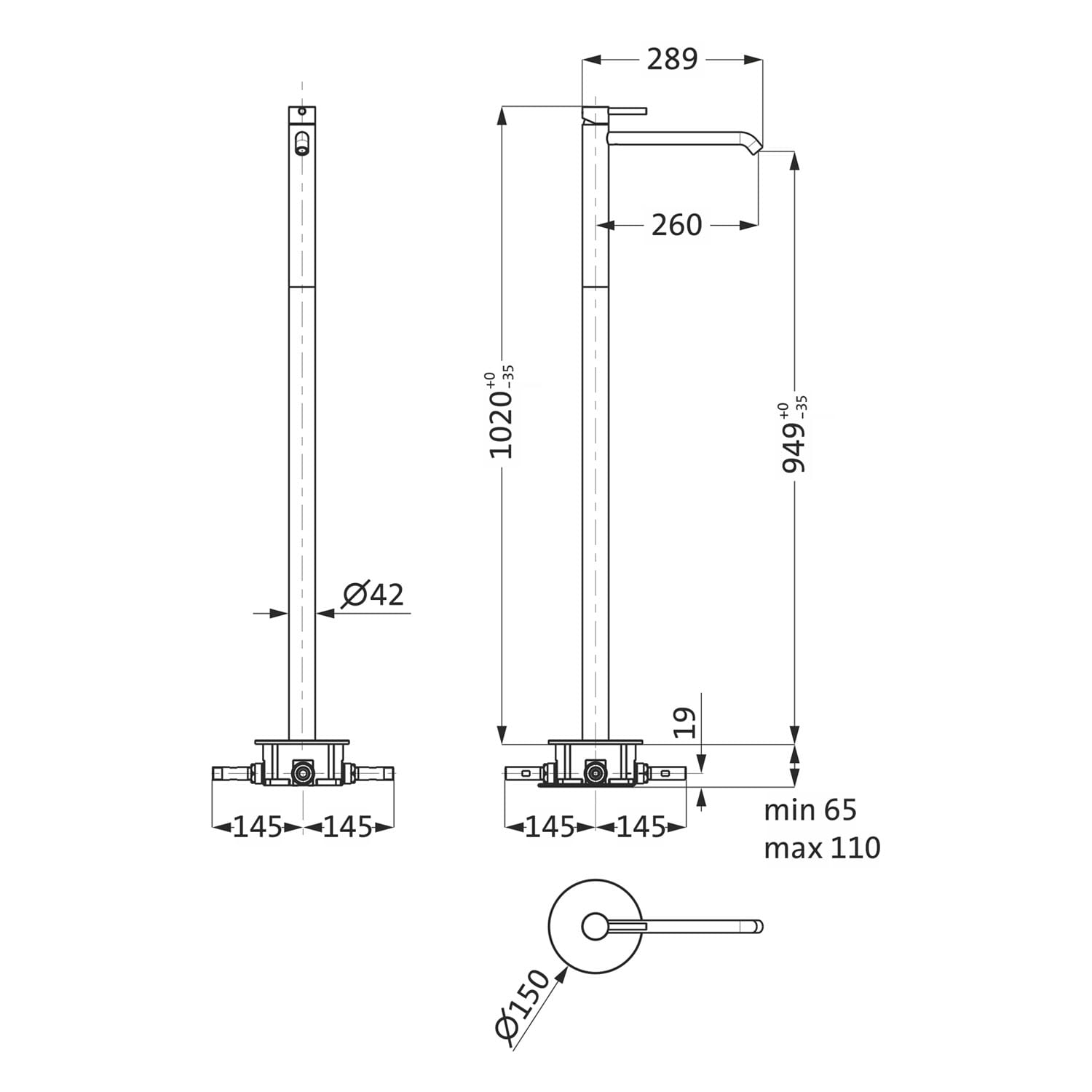 - Höhe Auslaufunterkante 949 mm (- Einbautoleranz)